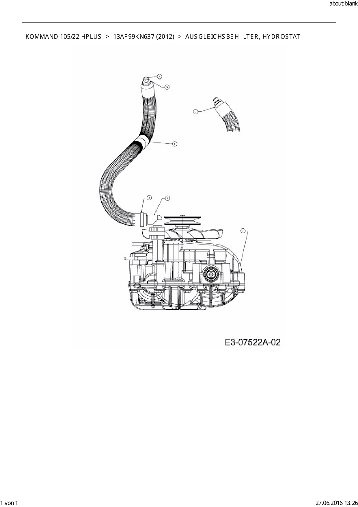 Ersatzteile für Rasentraktor EFCO Kommand 105/22 HPlus aus der Zeichnung Ausgleichsbehälter, Hydrostat:
