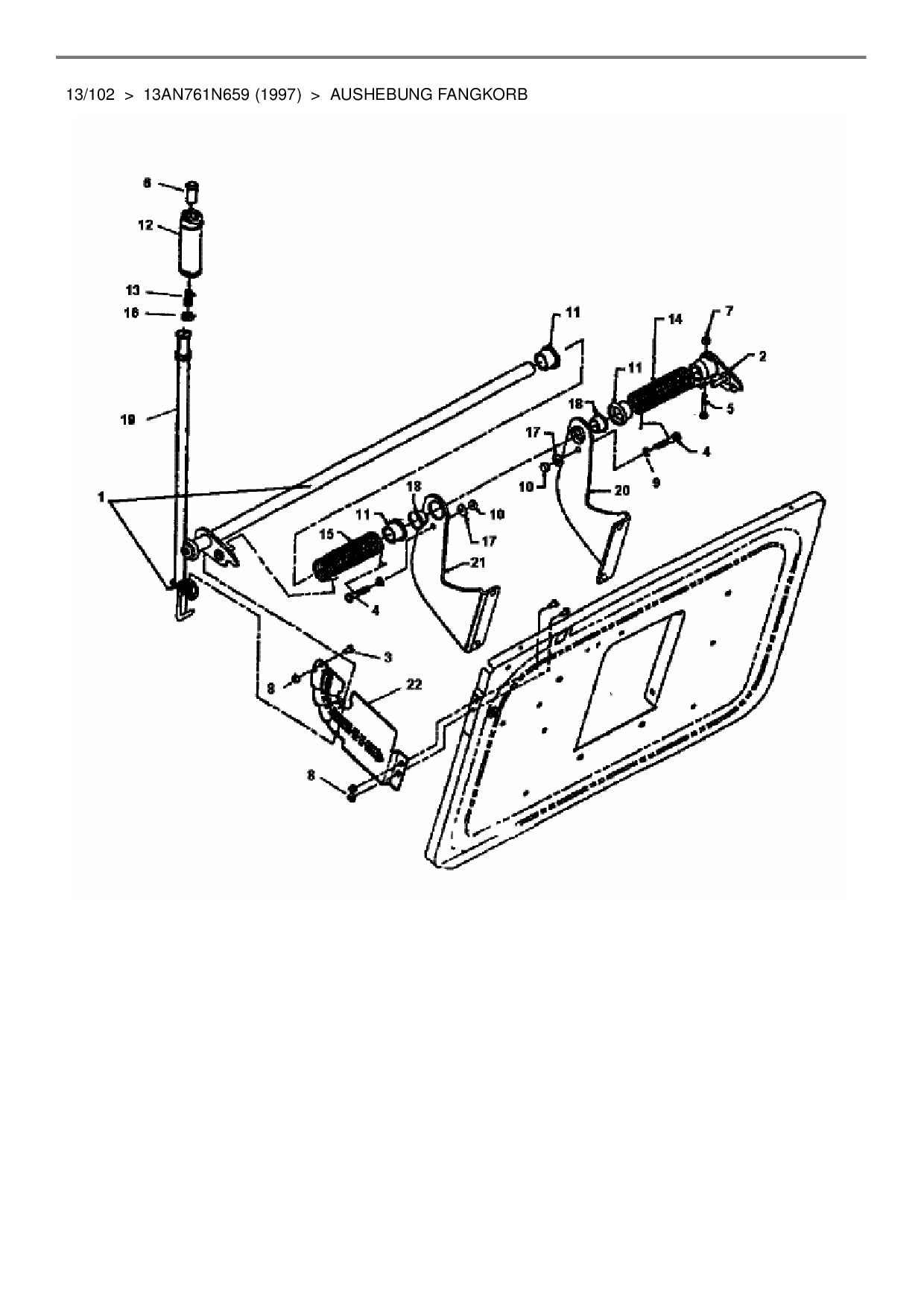 Ersatzteile für Rasentraktor Mastercut 13/102 aus der Zeichnung Aushebung Fangkorb: