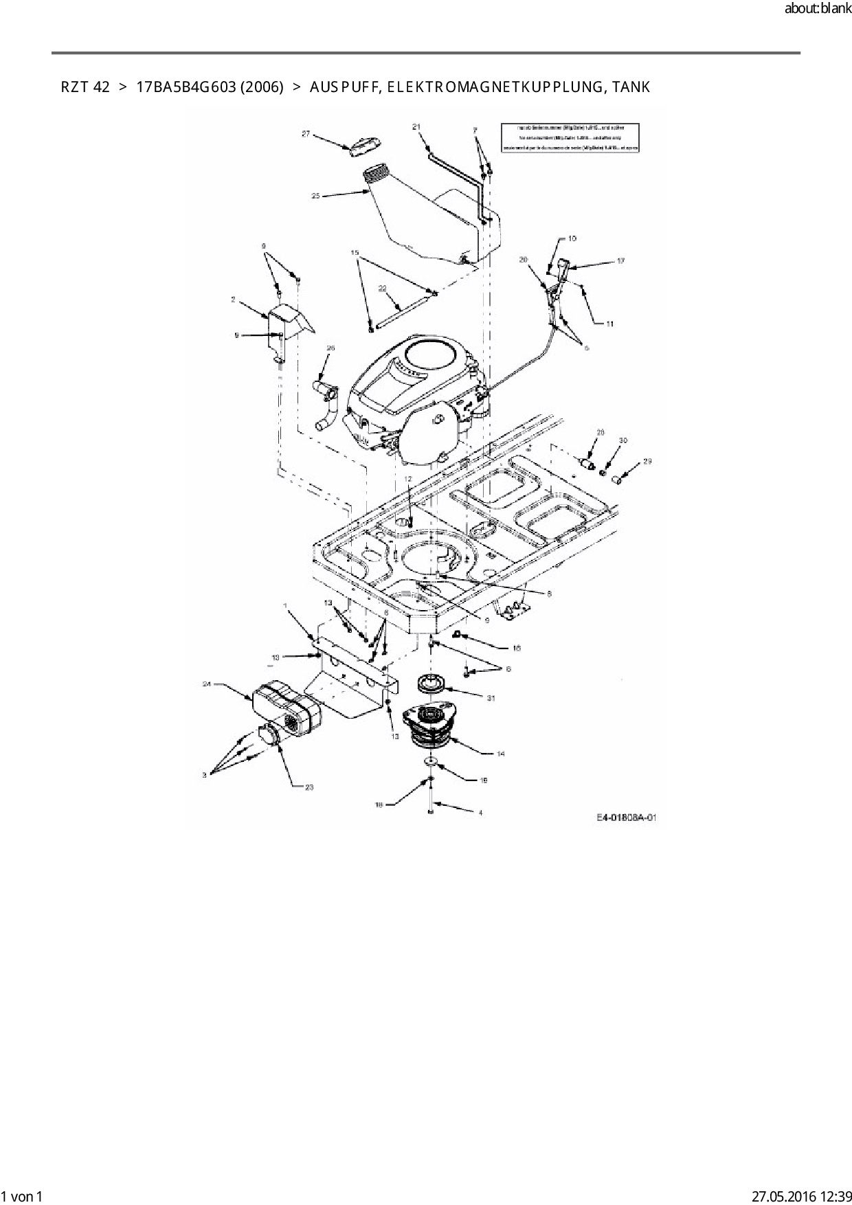 Ersatzteile für Zero Turn Cub Cadet RZT 42 aus der Zeichnung Auspuff, Elektromagnetkupplung, Tank: