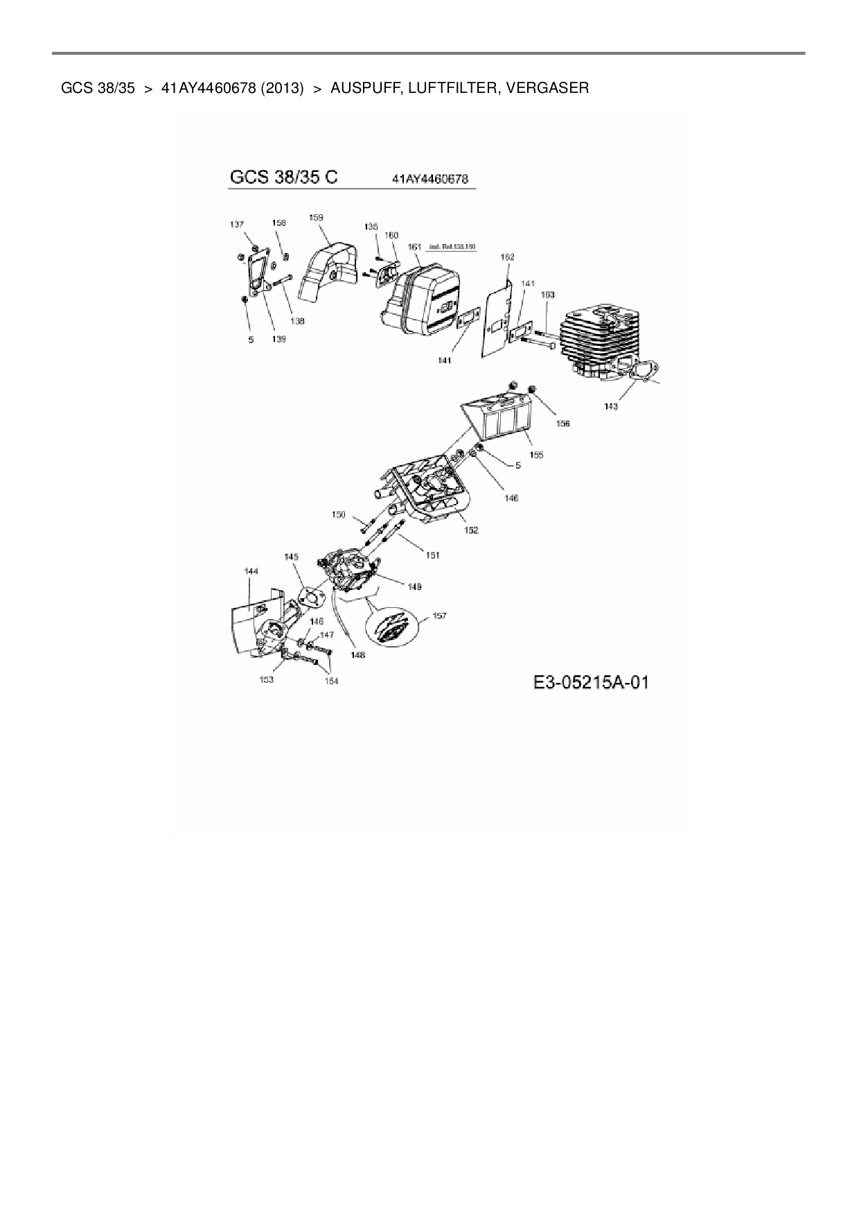 Ersatzteile für Motorkettensäge MTD GCS 38/35 aus der Zeichnung Auspuff, Luftfilter, Vergaser: