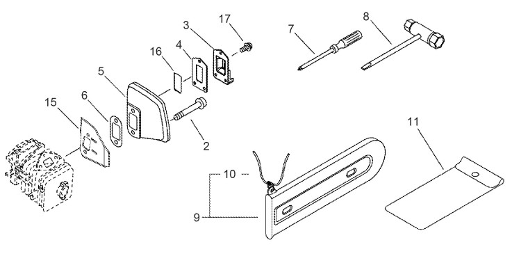 Zeichnung von ECHO Motorsägen CS-280WES CS-280WES bis S.-Nr.: 37006105 Auspuff,Werkzeug: