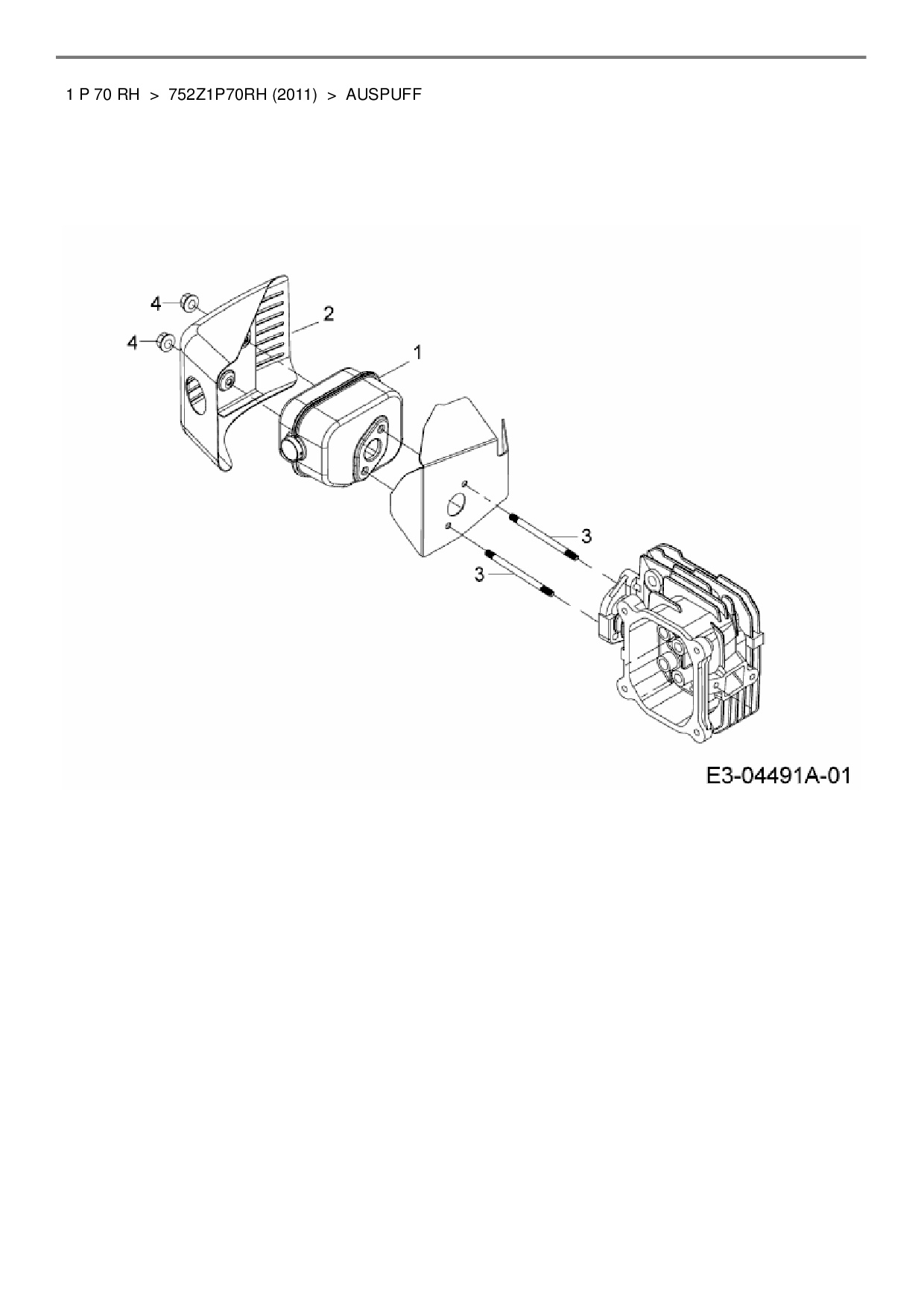 Ersatzteile für Benzinmotor MTD Wolf-Garten 1 P 70 RH aus der Zeichnung Auspuff: