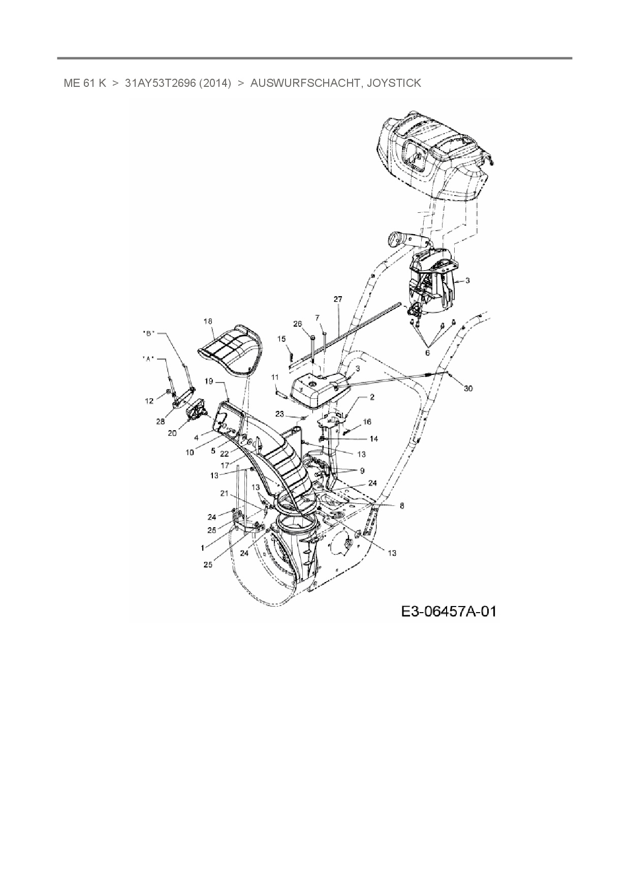 Ersatzteile für Schneefräse MTD ME 61 K aus der Zeichnung Auswurfschacht, Joystick: