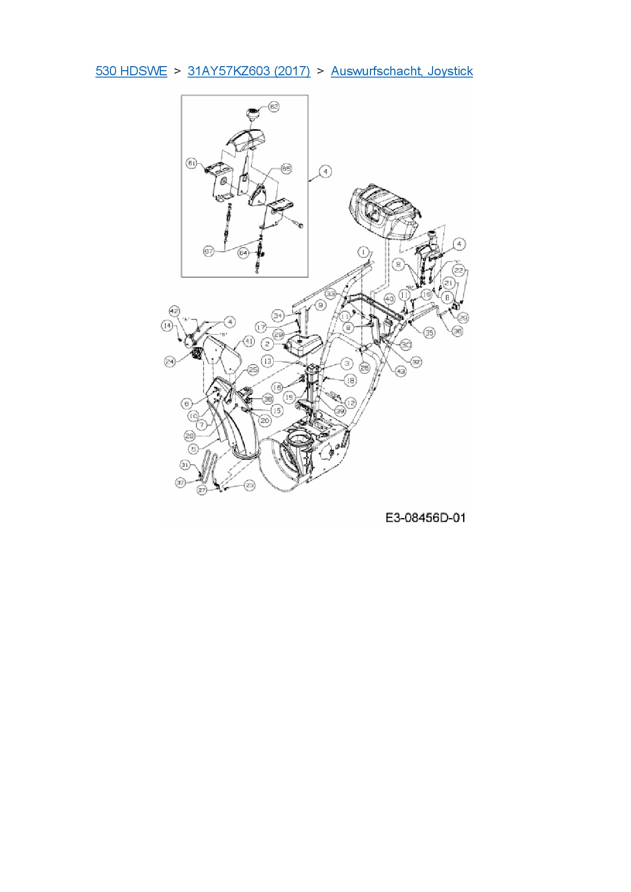 Ersatzteile für Schneefräse Cub Cadet 530 HDSWE aus der Zeichnung Auswurfschacht, Joystick: