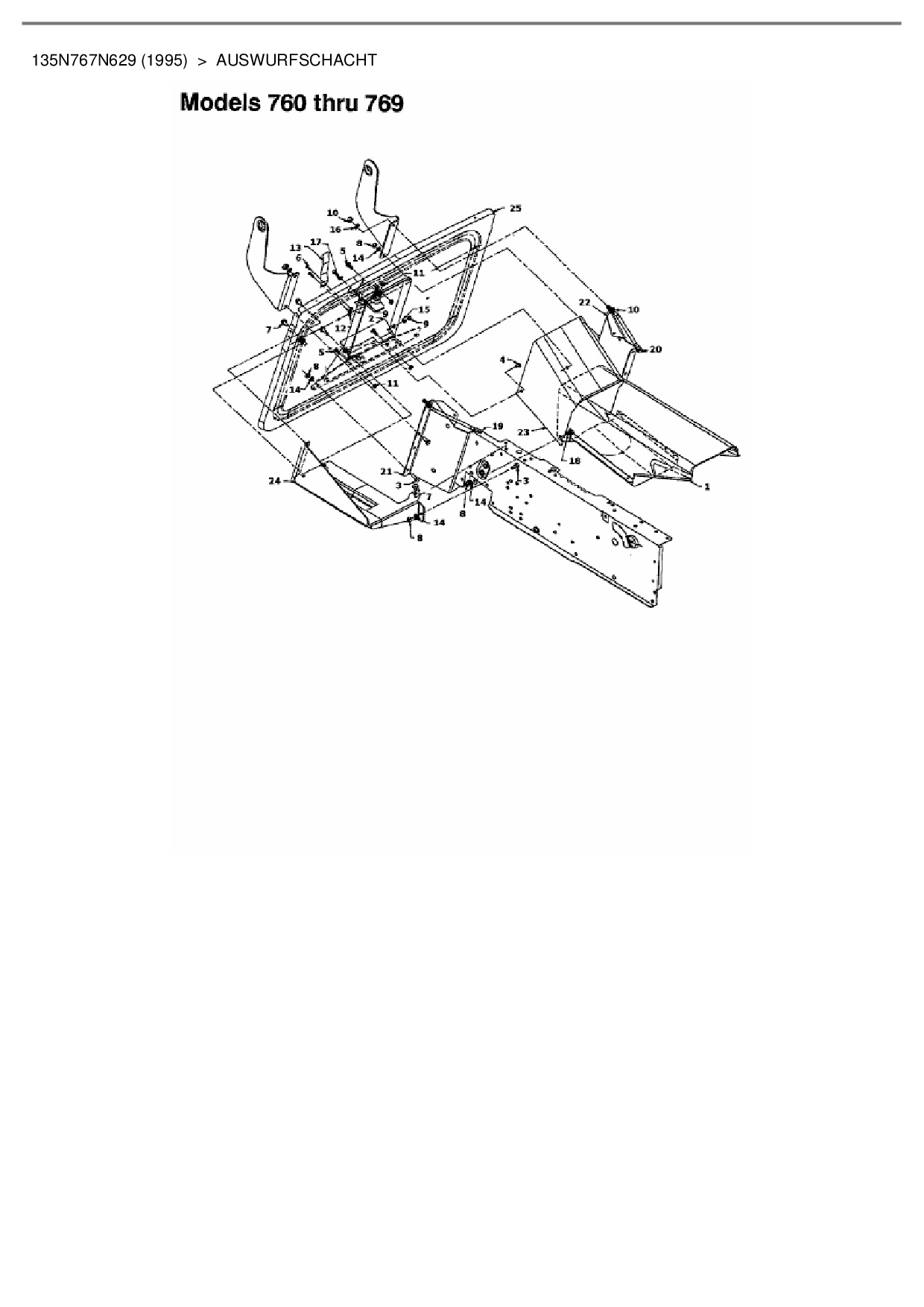 Ersatzteile für Rasentraktor Brill 102/13 RTH aus der Zeichnung Auswurfschacht: