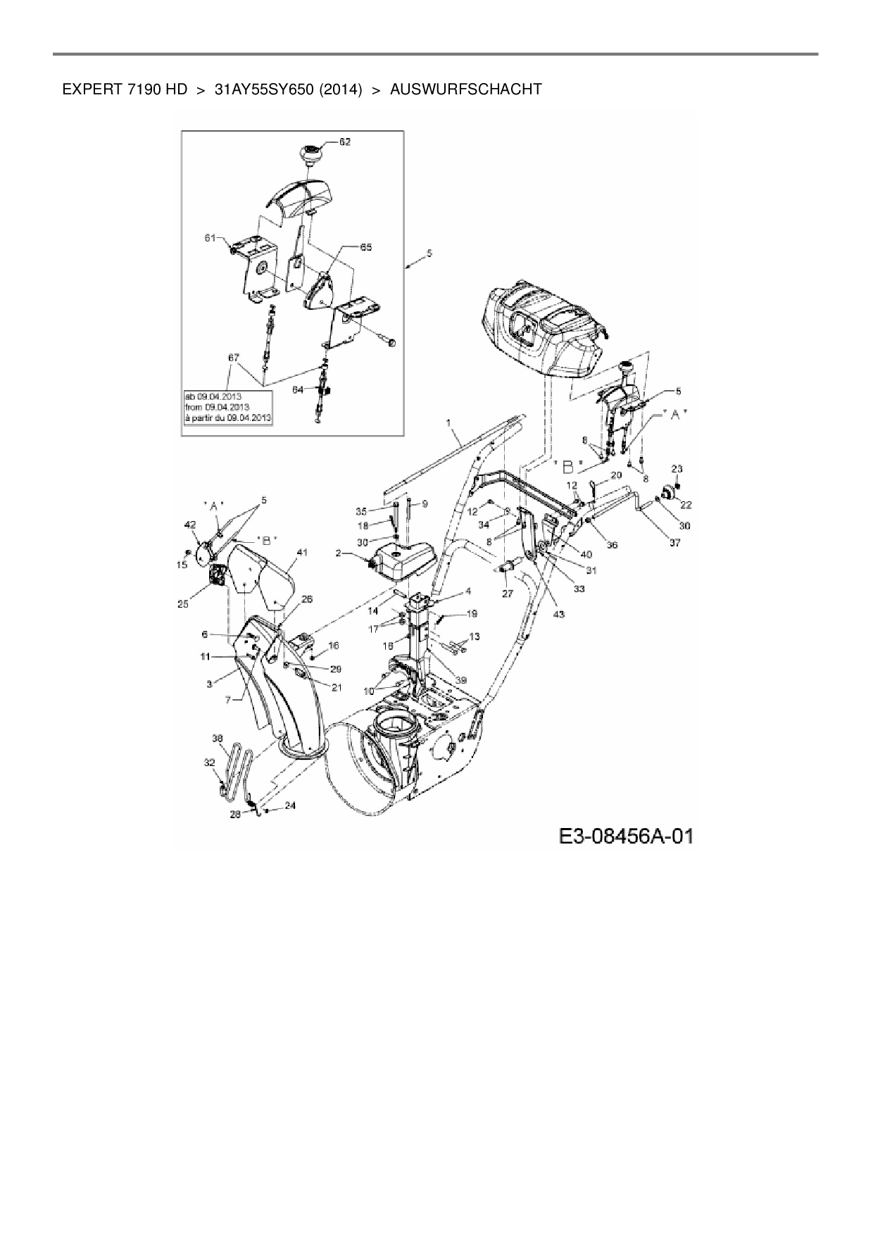 Ersatzteile für Schneefräse Wolf-Garten Expert Expert 7190 HD aus der Zeichnung Auswurfschacht: