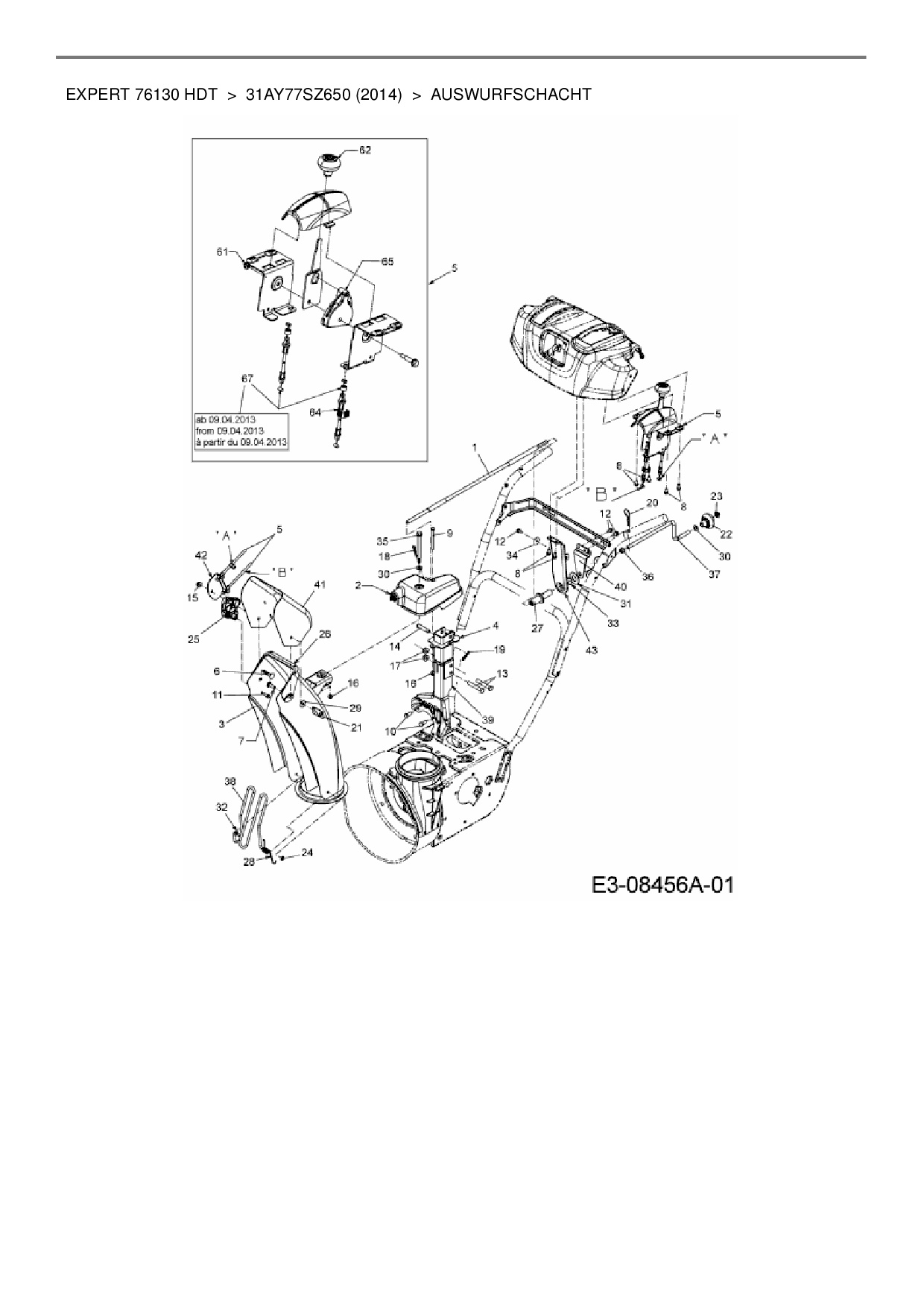Ersatzteile für Schneefräse Wolf-Garten Expert Expert 76130 HDT aus der Zeichnung Auswurfschacht: