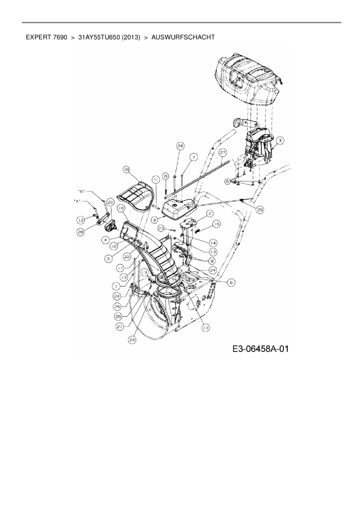 Ersatzteile für Schneefräse Wolf-Garten Expert Expert 7690 aus der Zeichnung Auswurfschacht: