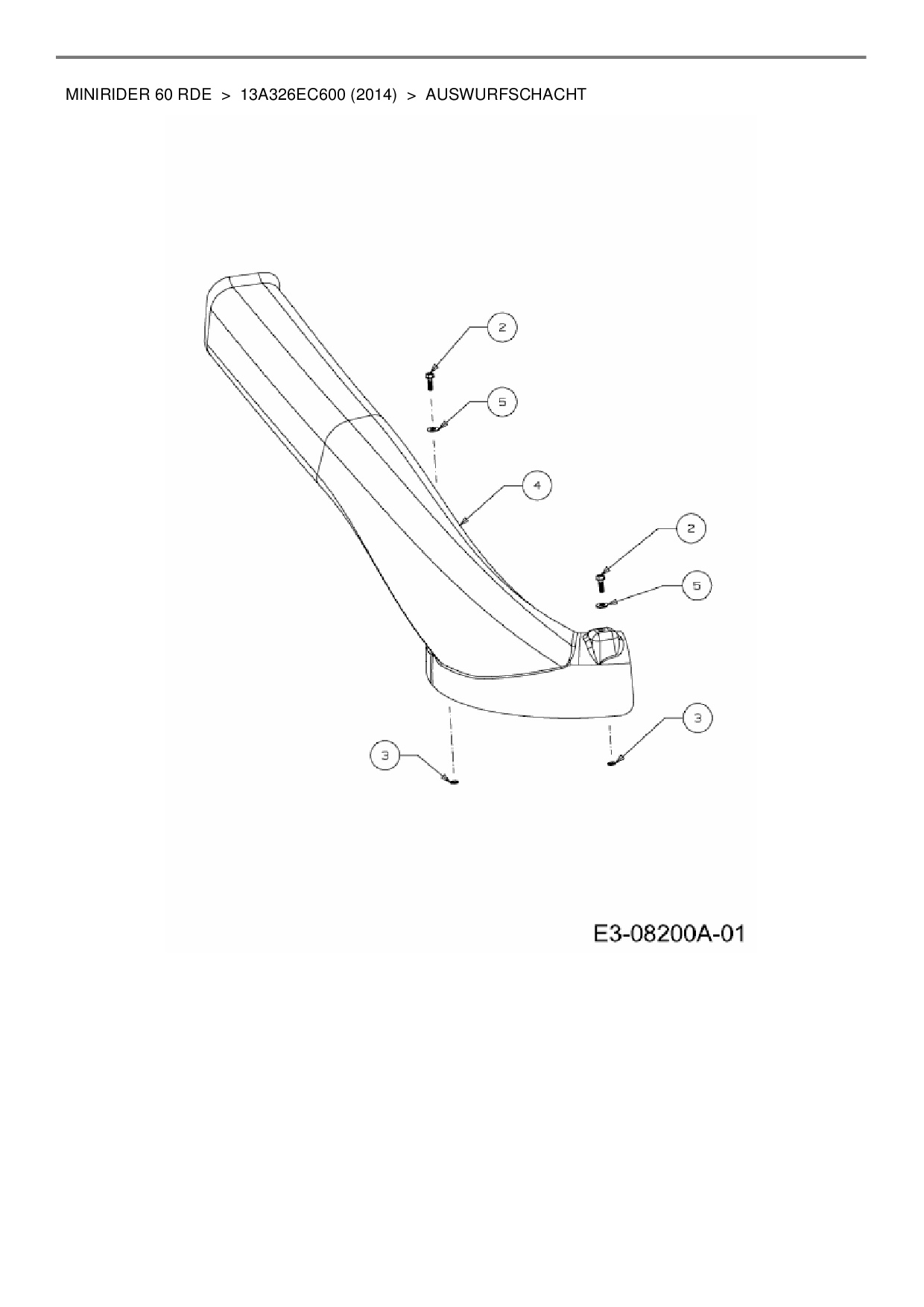 Ersatzteile für Rasentraktor MTD Minirider 60 RDE aus der Zeichnung Auswurfschacht: