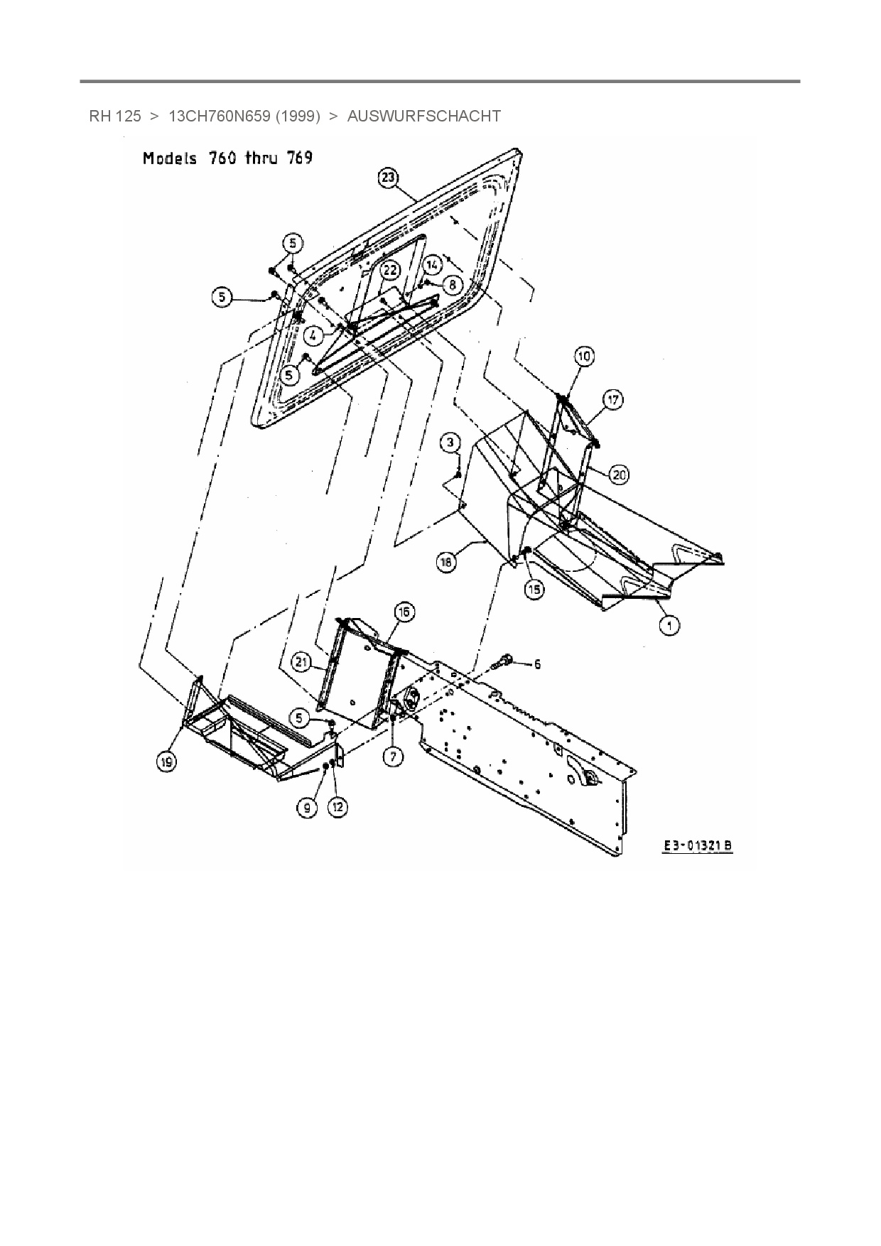 Ersatzteile für Rasentraktor Mastercut RH 125 aus der Zeichnung Auswurfschacht: