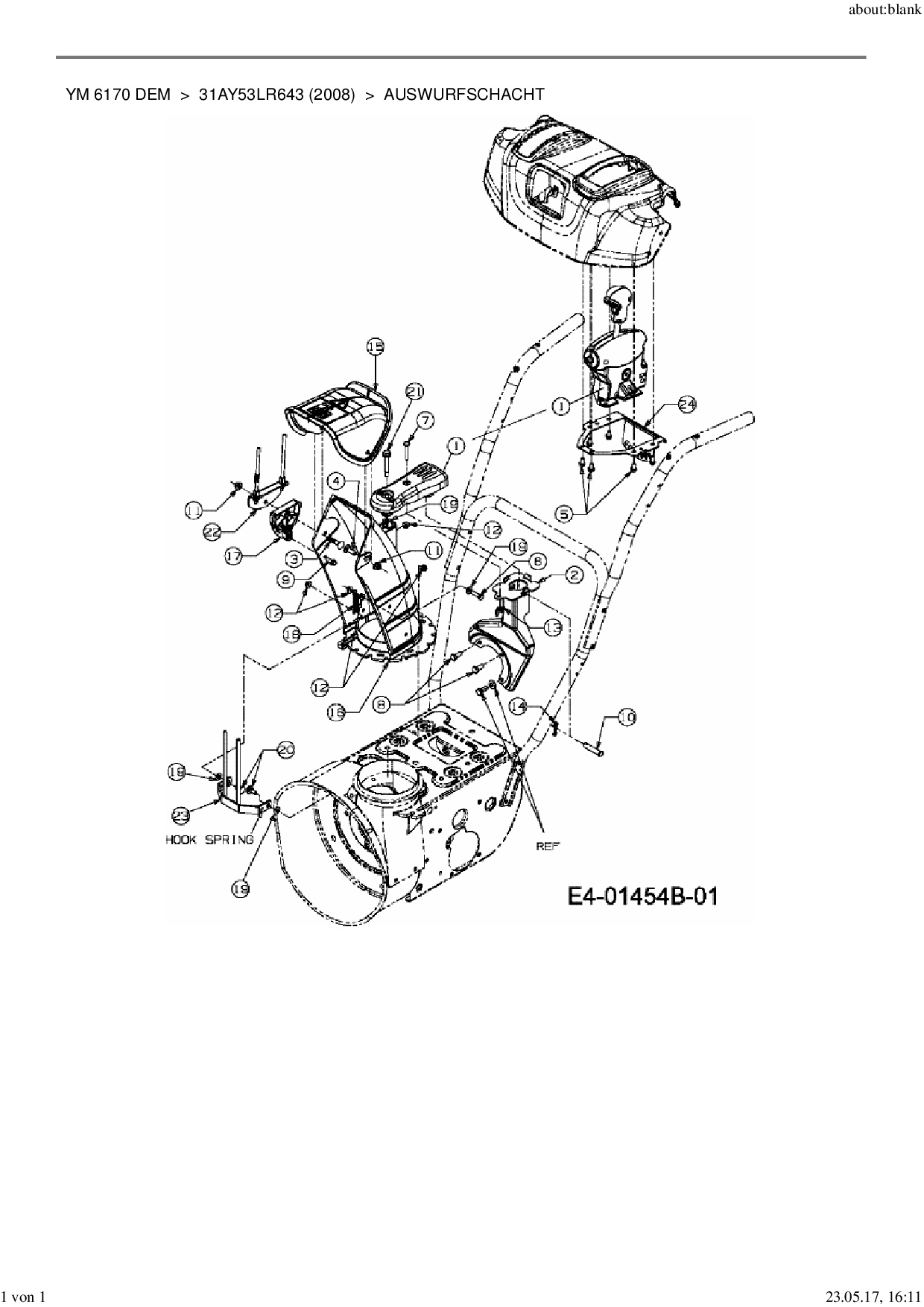 Ersatzteile für Schneefräsen Yard-Man YM 6170 DEM aus der Zeichnung Auswurfschacht: