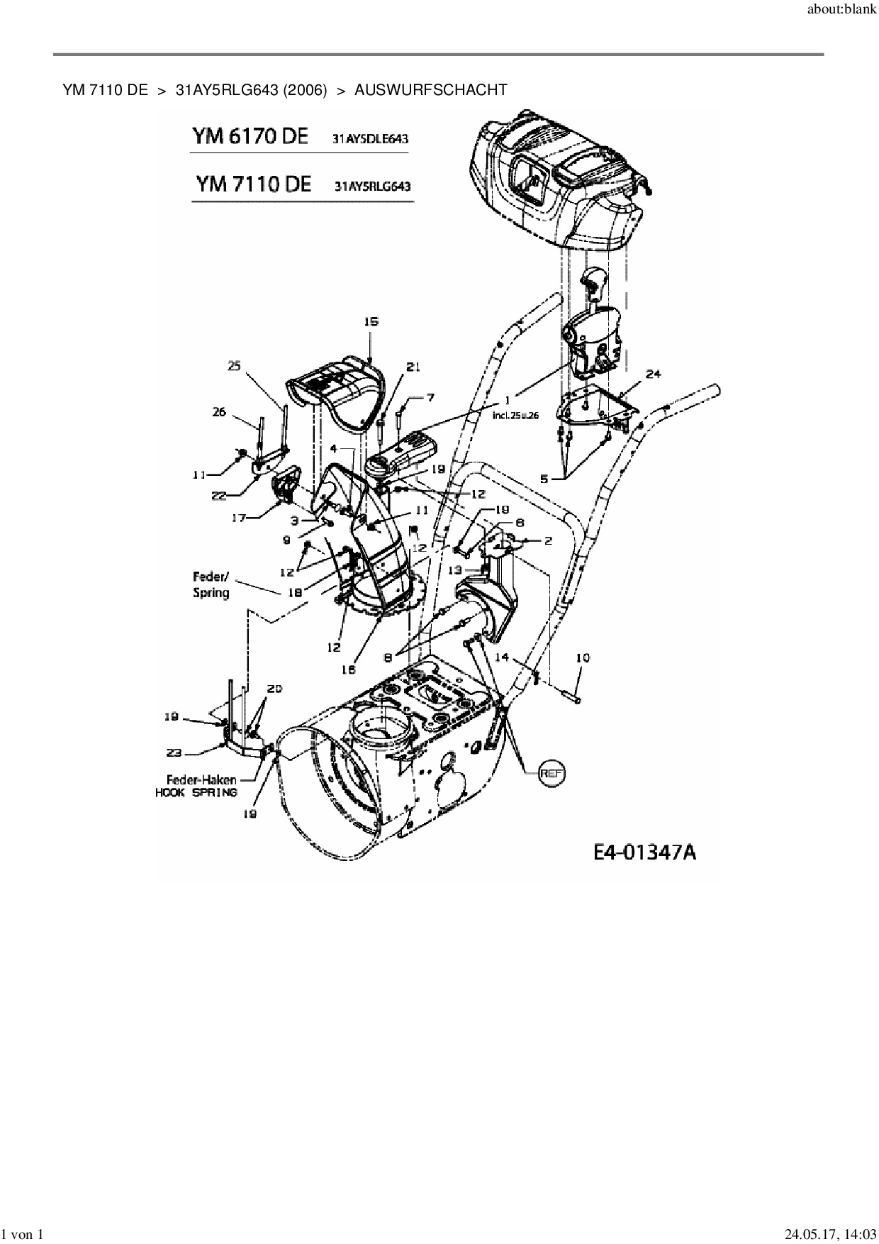 Ersatzteile für Schneefräsen Yard-Man YM 7110 DE aus der Zeichnung Auswurfschacht:
