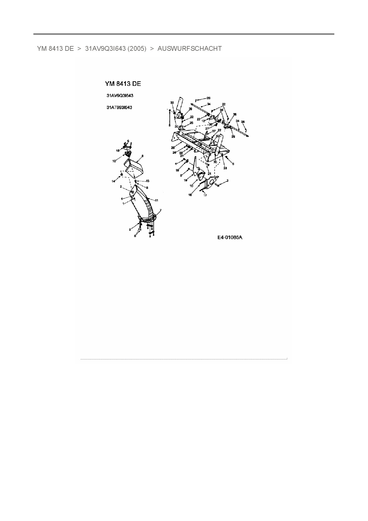 Ersatzteile für Schneefräsen Yard-Man YM 8413 DE aus der Zeichnung Auswurfschacht: