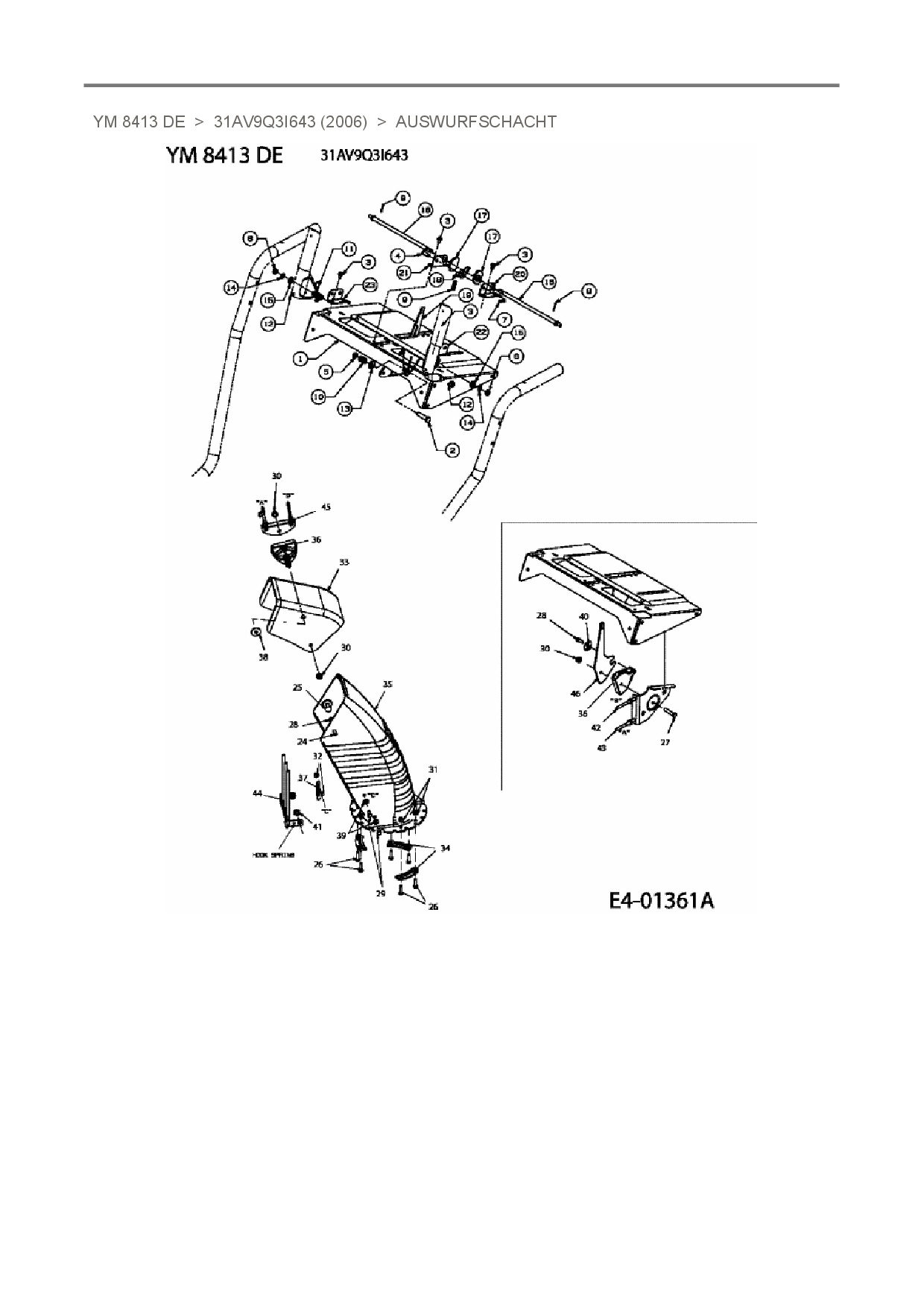 Ersatzteile für Schneefräsen Yard-Man YM 8413 DE aus der Zeichnung Auswurfschacht: