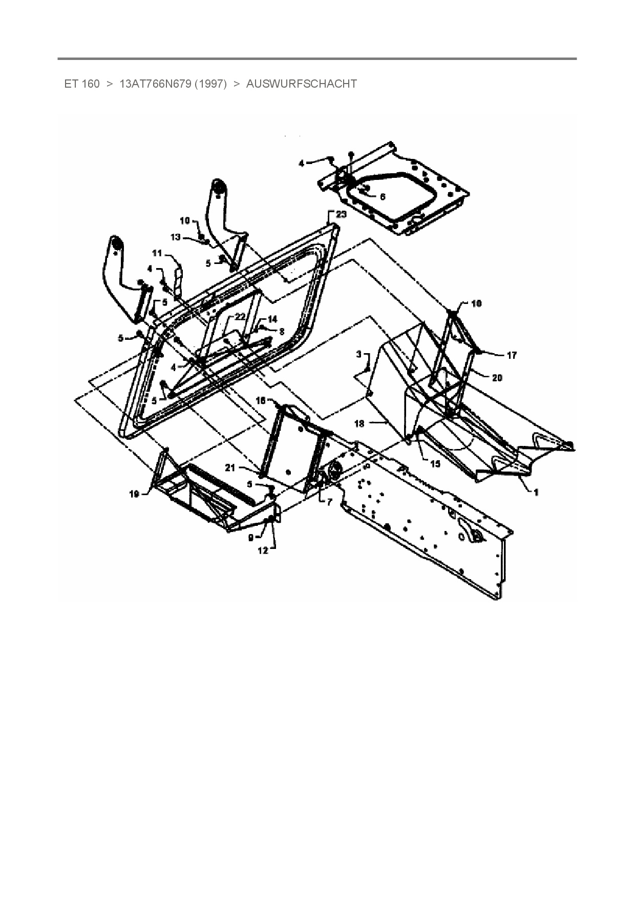 Ersatzteile für Rasentraktor White ET 160 aus der Zeichnung Auswurfschacht:
