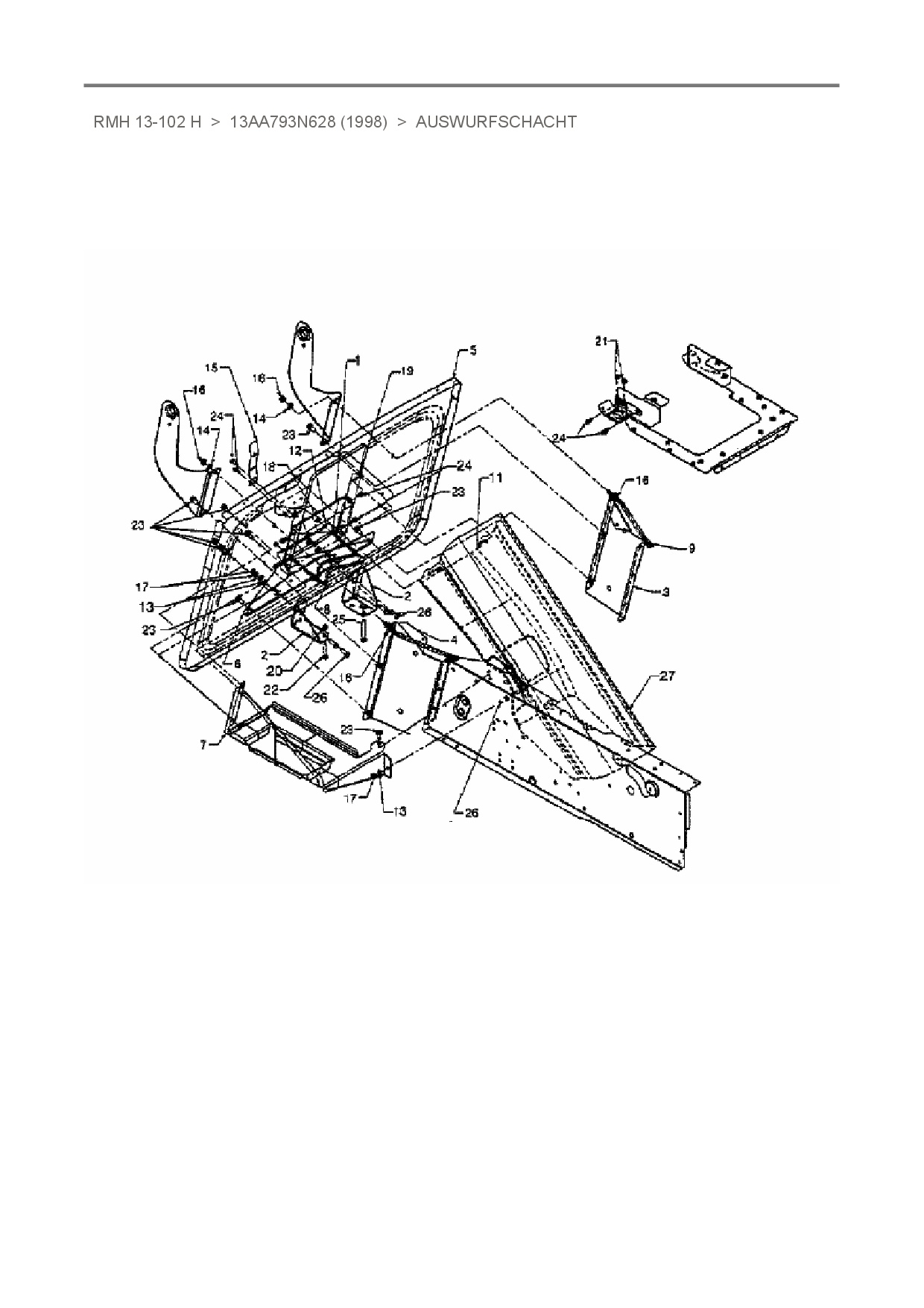 Ersatzteile für Rasentraktor Raiffeisen RMH 13-102 H aus der Zeichnung Auswurfschacht: