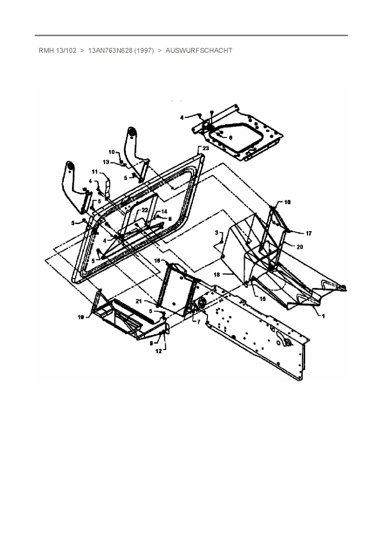 Ersatzteile für Rasentraktor Raiffeisen RMH 13/102 aus der Zeichnung Auswurfschacht:
