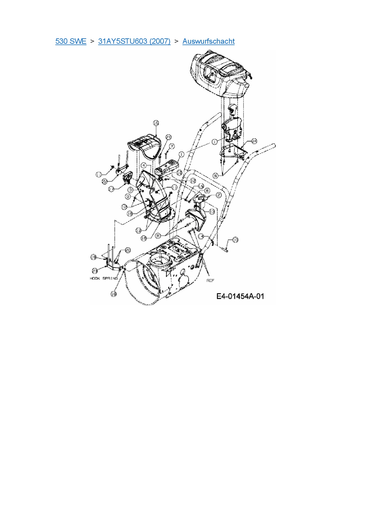 Ersatzteile für Schneefräse Cub Cadet 530 SWE aus der Zeichnung Auswurfschacht: