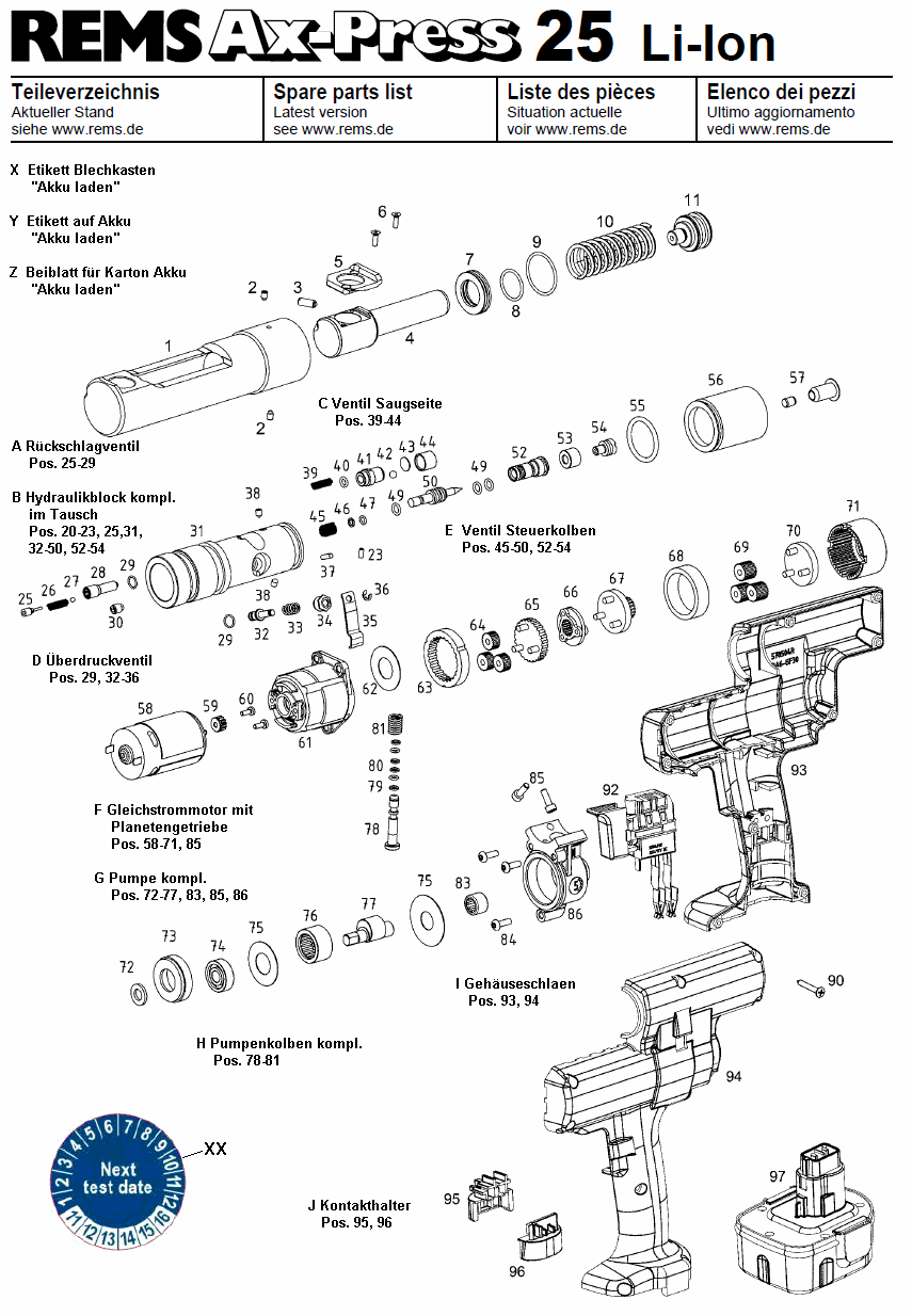 Folgende Ersatzteile für Rems Ax-Press 25 Li-Ion - Presse 573003 573003 können Sie hier bestellen: