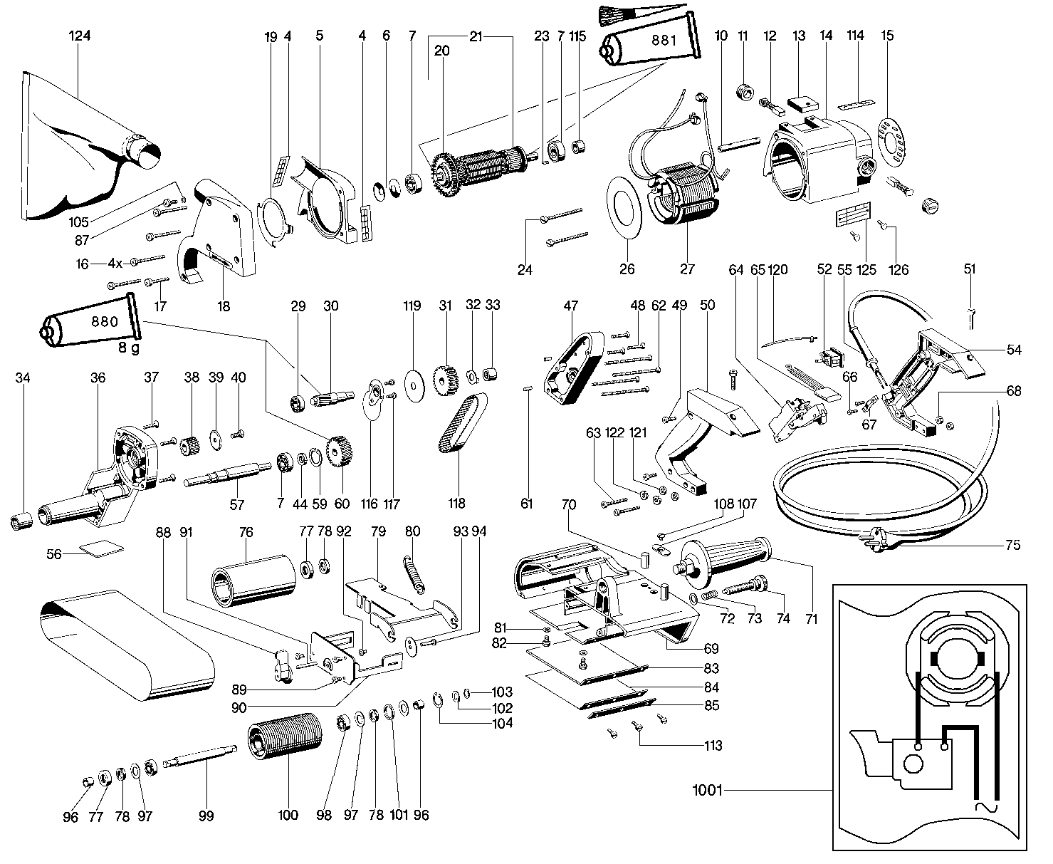 Zeichnung 1 Sollten Sie Fragen zu einem Ersatzteil von Metabo BA 6100 Bandschleifer 630016005 haben, können Sie uns gerne eine E-Mail (mit einem Foto vom Typenschild Ihres Gerätes) schreiben oder eine Ersatzteilanfrage stellen.