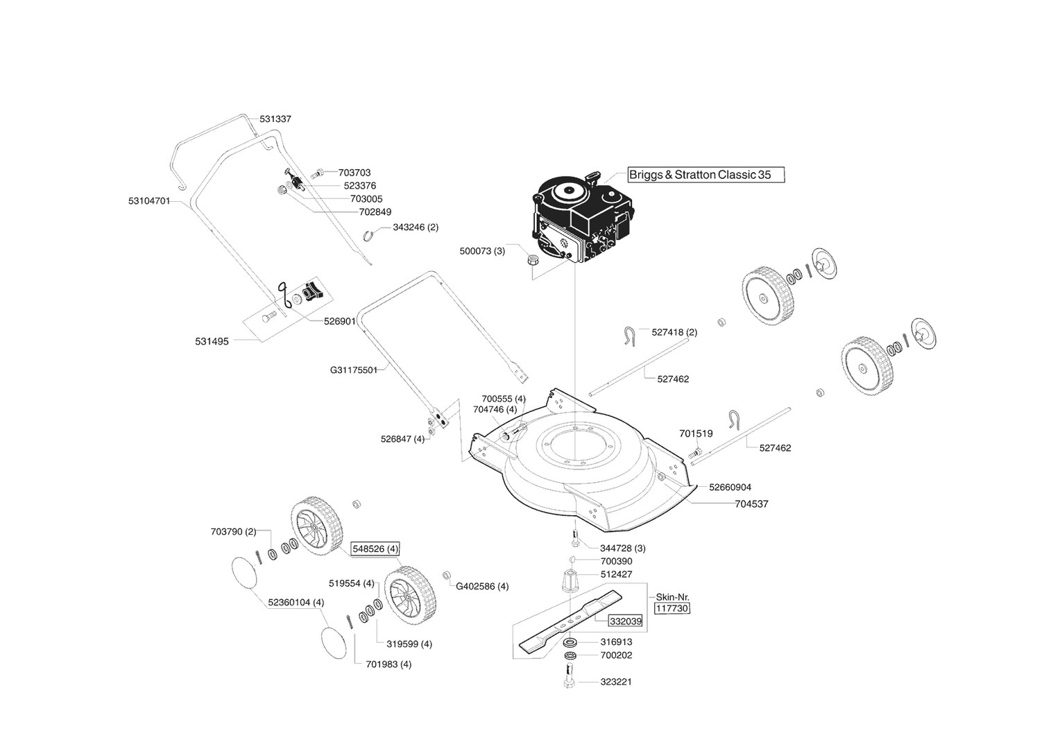 Zeichnungen von AL-KO Mulchmäher BIO FAVORIT 468 mit der Geräte-Artikelnr. 118633: