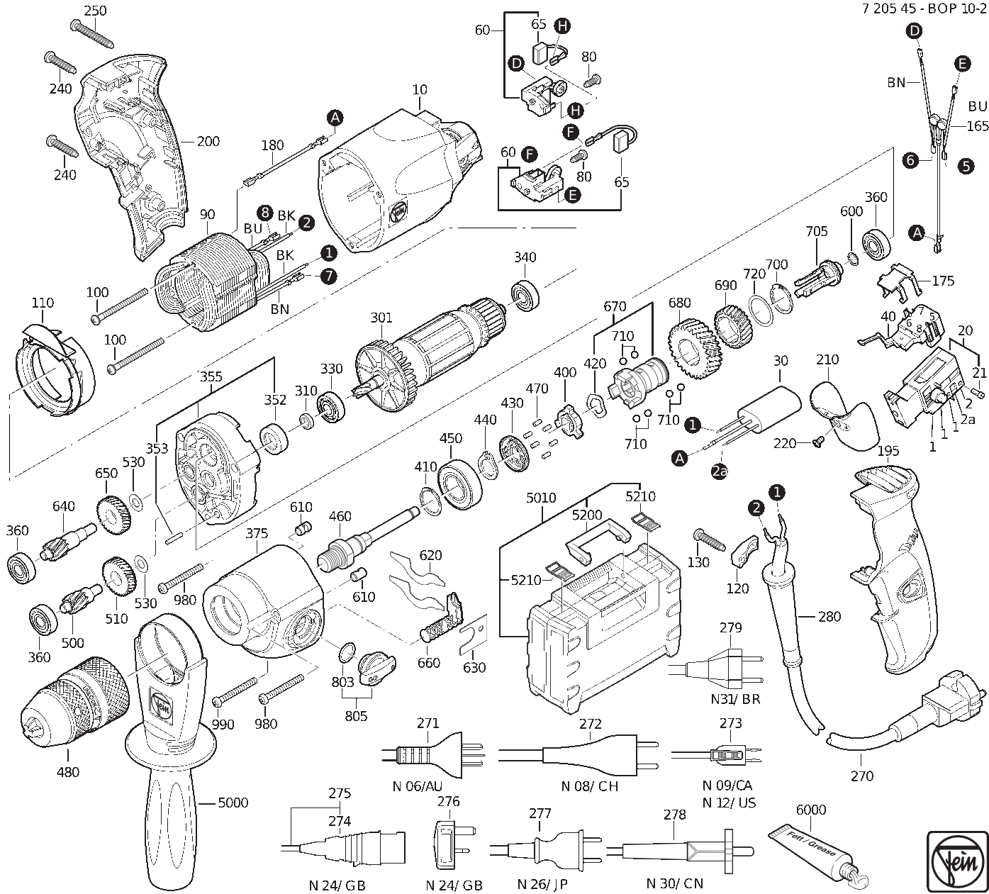Zeichnung Sollten Sie Fragen zu einem Ersatzteil vom Fein BOP10-2 72054500230 haben, können Sie uns gerne eine E-Mail (mit einem Foto vom Typenschild Ihres Gerätes) schreiben oder eine Ersatzteilanfrage stellen.