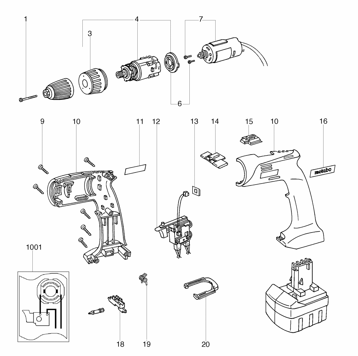 Zeichnung 1 Sollten Sie Fragen zu einem Ersatzteil von Metabo BS 9.6 Impuls Akku-Gerät 602302000 haben, können Sie uns gerne eine E-Mail (mit einem Foto vom Typenschild Ihres Gerätes) schreiben oder eine Ersatzteilanfrage stellen.
