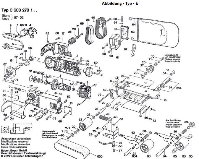 Hier finden Sie alle Ersatzteile für Bosch Bandschleifer 0 600 270 103: