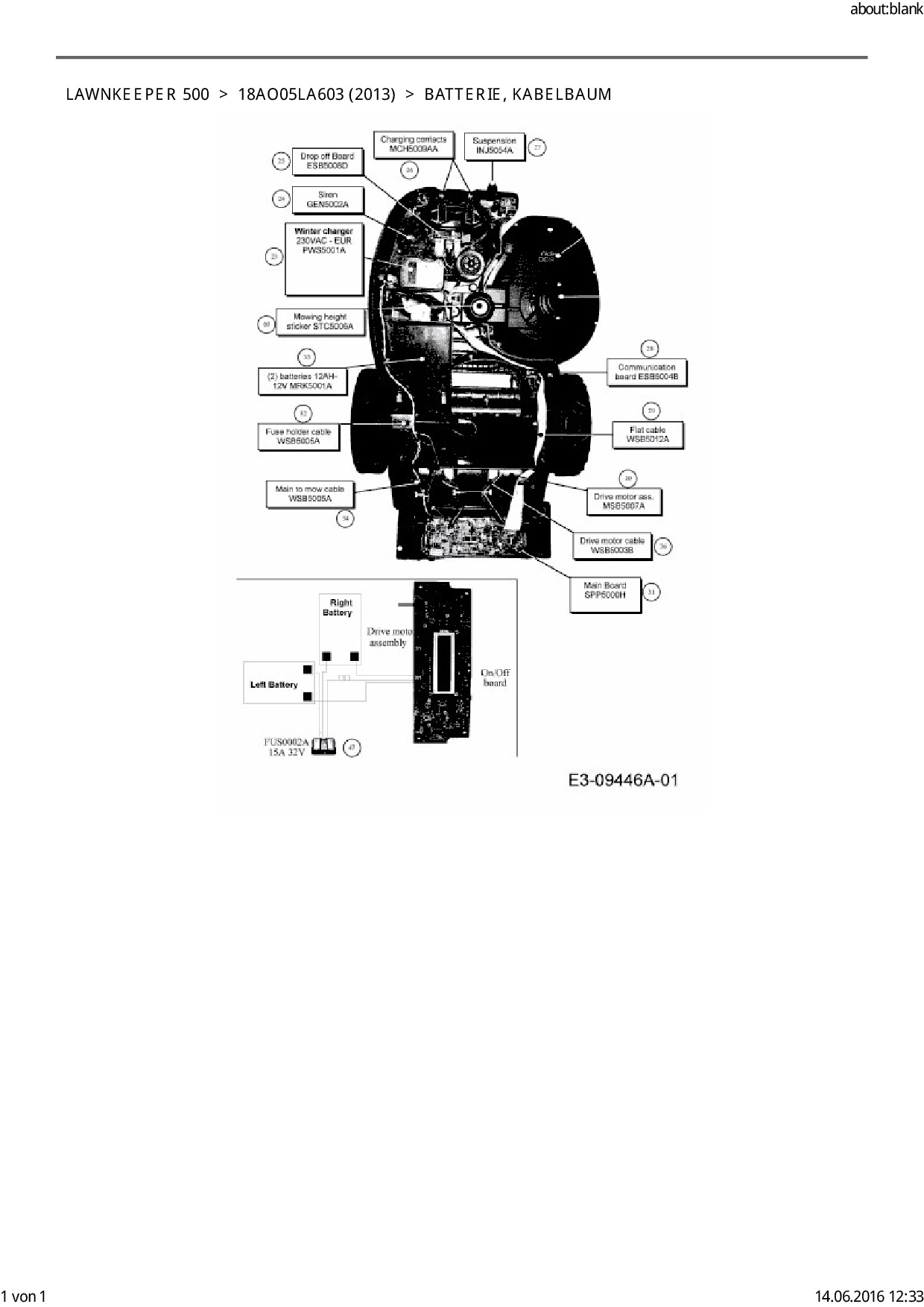 Ersatzteile für Mähroboter Cub Cadet Lawnkeeper 500 aus der Zeichnung Batterie, Kabelbaum: