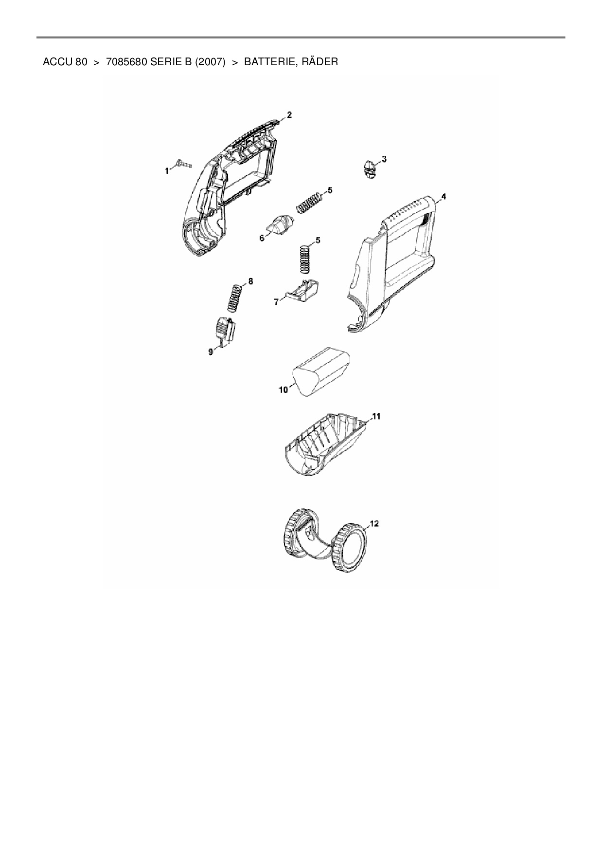 Download Ersatzteil-Zeichnung Wolf-Garten Accu 80 Zeichnung Batterie, Räder (PDF-Format)