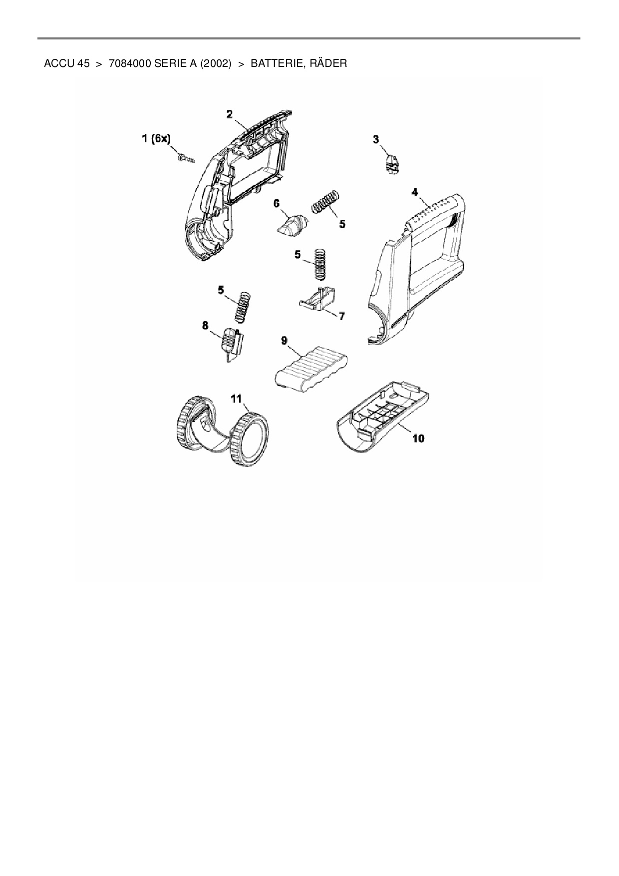 Download Ersatzteil-Zeichnung Wolf-Garten Accu 45 Zeichnung Batterie, Räder (PDF-Format)