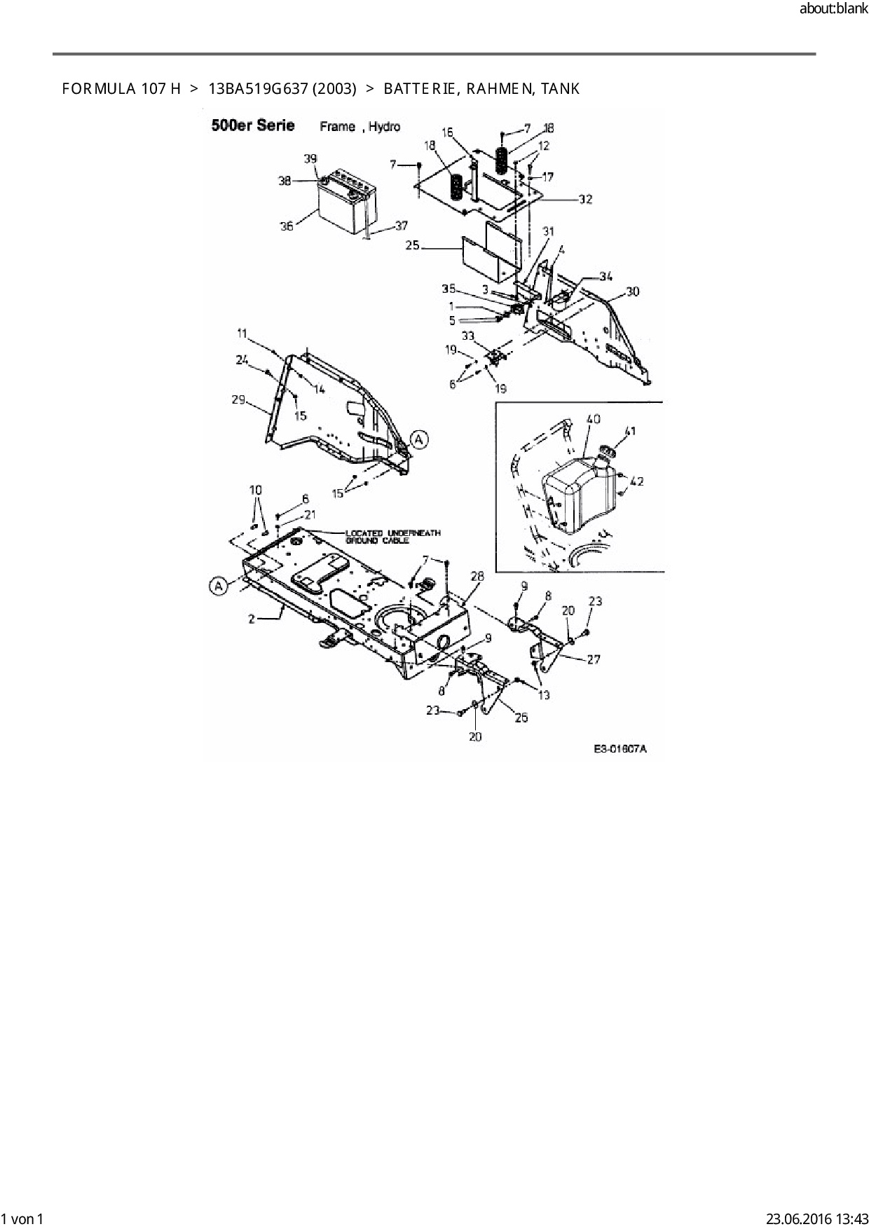 Ersatzteile für Rasentraktor EFCO Formula 107 H aus der Zeichnung Batterie, Rahmen, Tank: