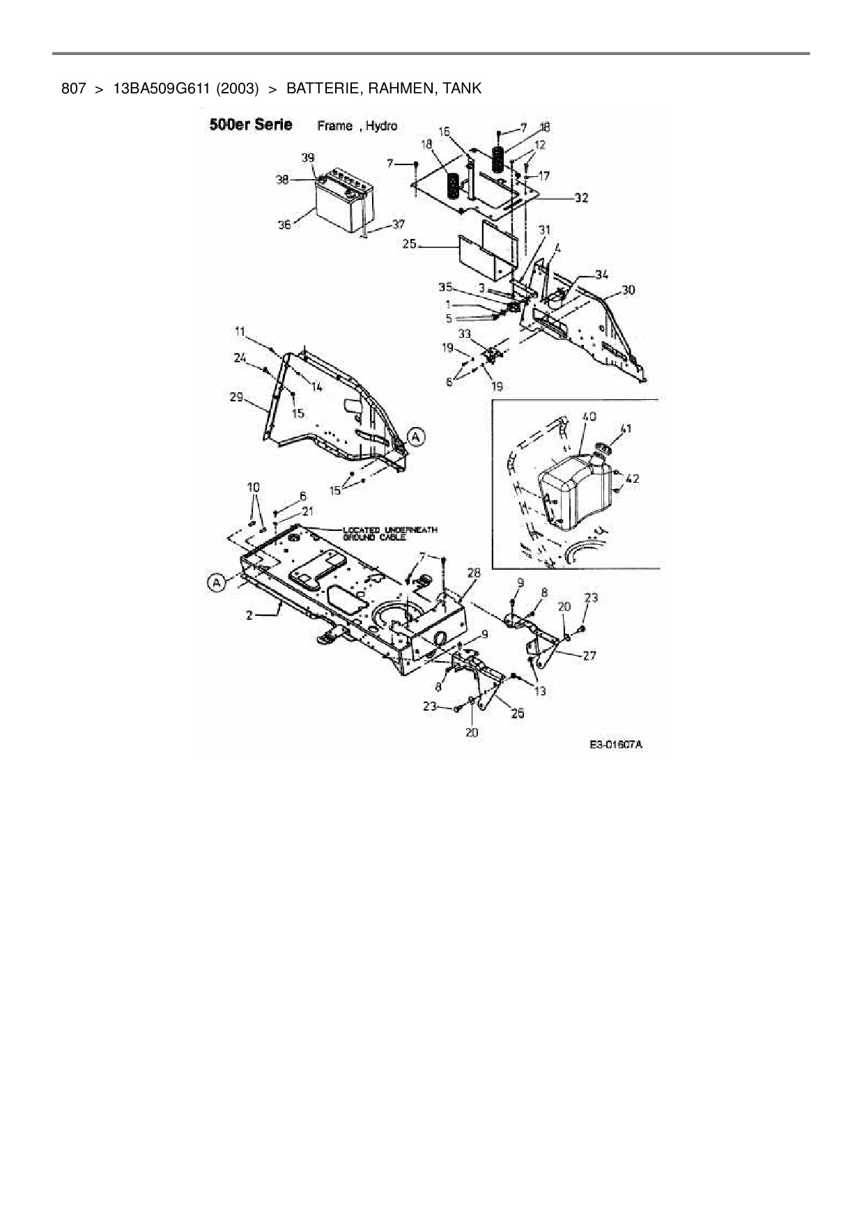 Ersatzteile für Rasentraktor Lawnflite 807 aus der Zeichnung Batterie, Rahmen, Tank: