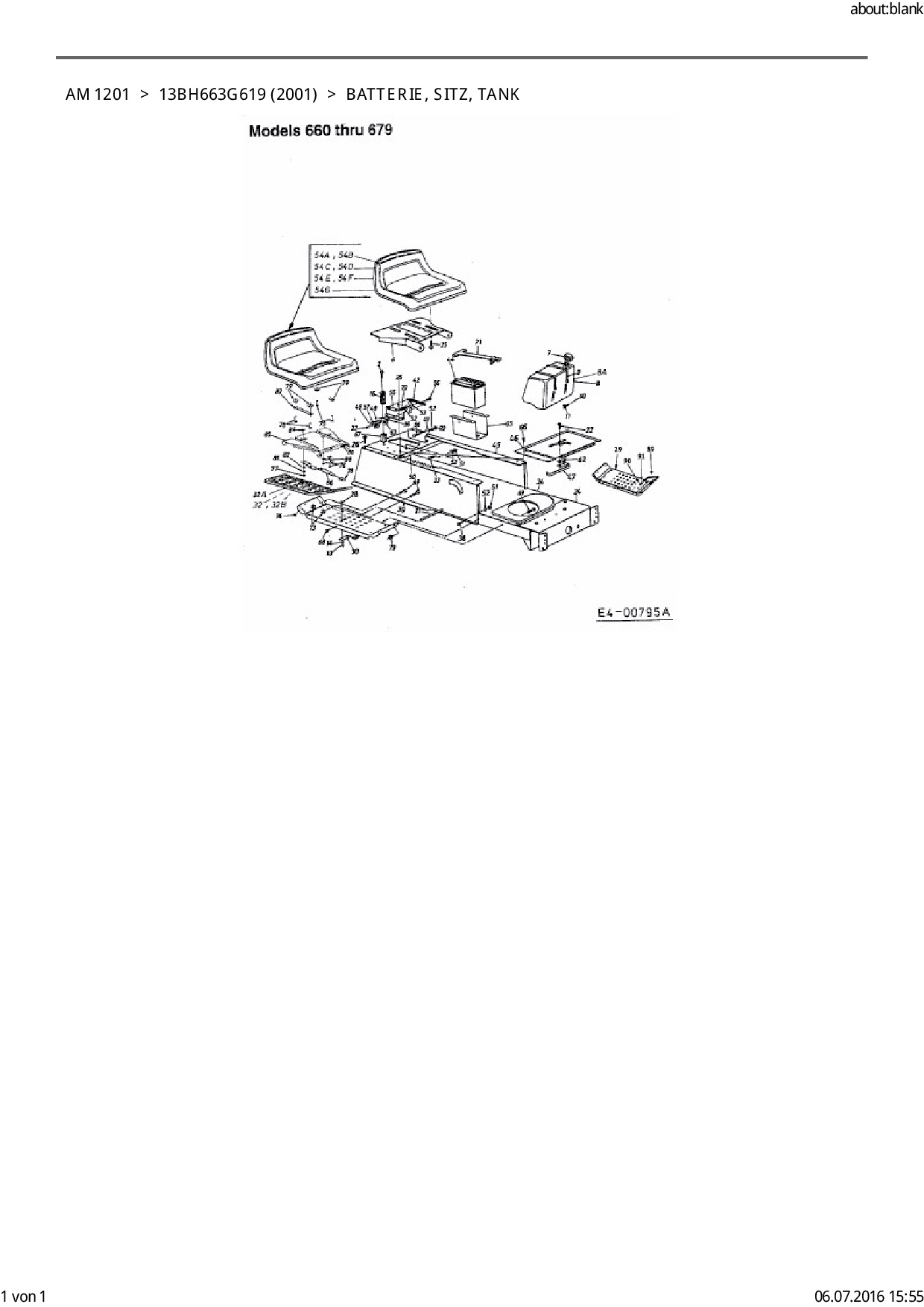 Ersatzteile für Rasentraktor FLEURELLE AM 1201 aus der Zeichnung Batterie, Sitz, Tank: