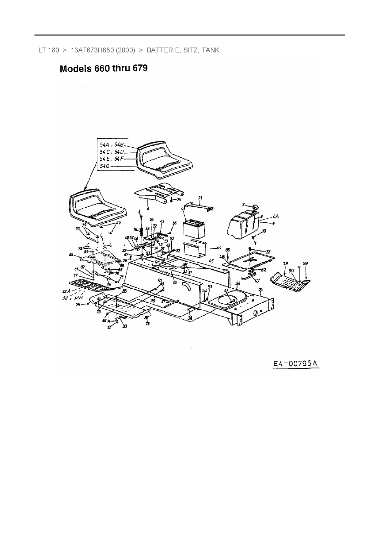 Ersatzteile für Rasentraktor White LT 180 aus der Zeichnung Batterie, Sitz, Tank: