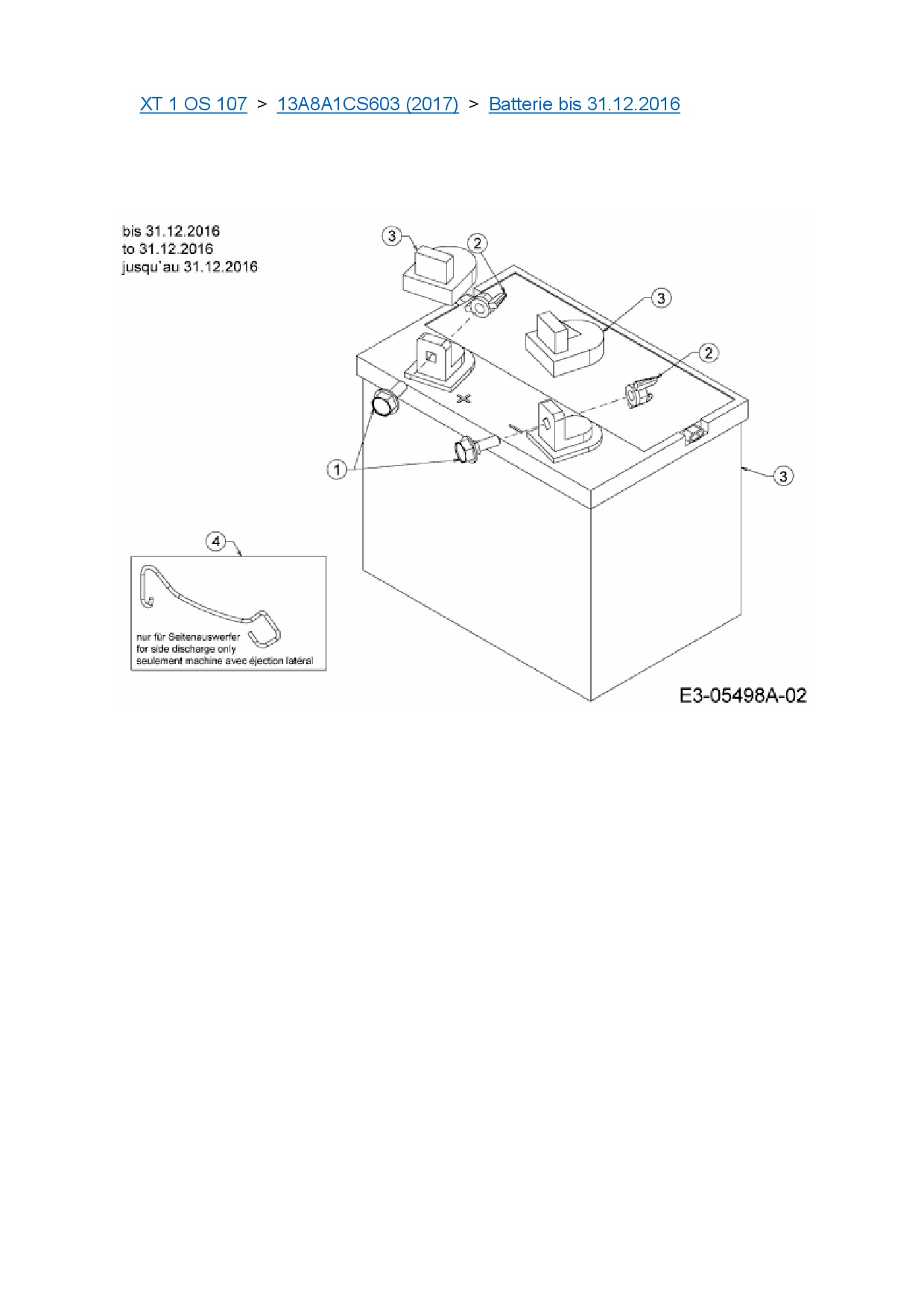 Ersatzteile für Rasentraktor Cub Cadet XT 1 OS 107 aus der Zeichnung Batterie bis 31.12.2016:
