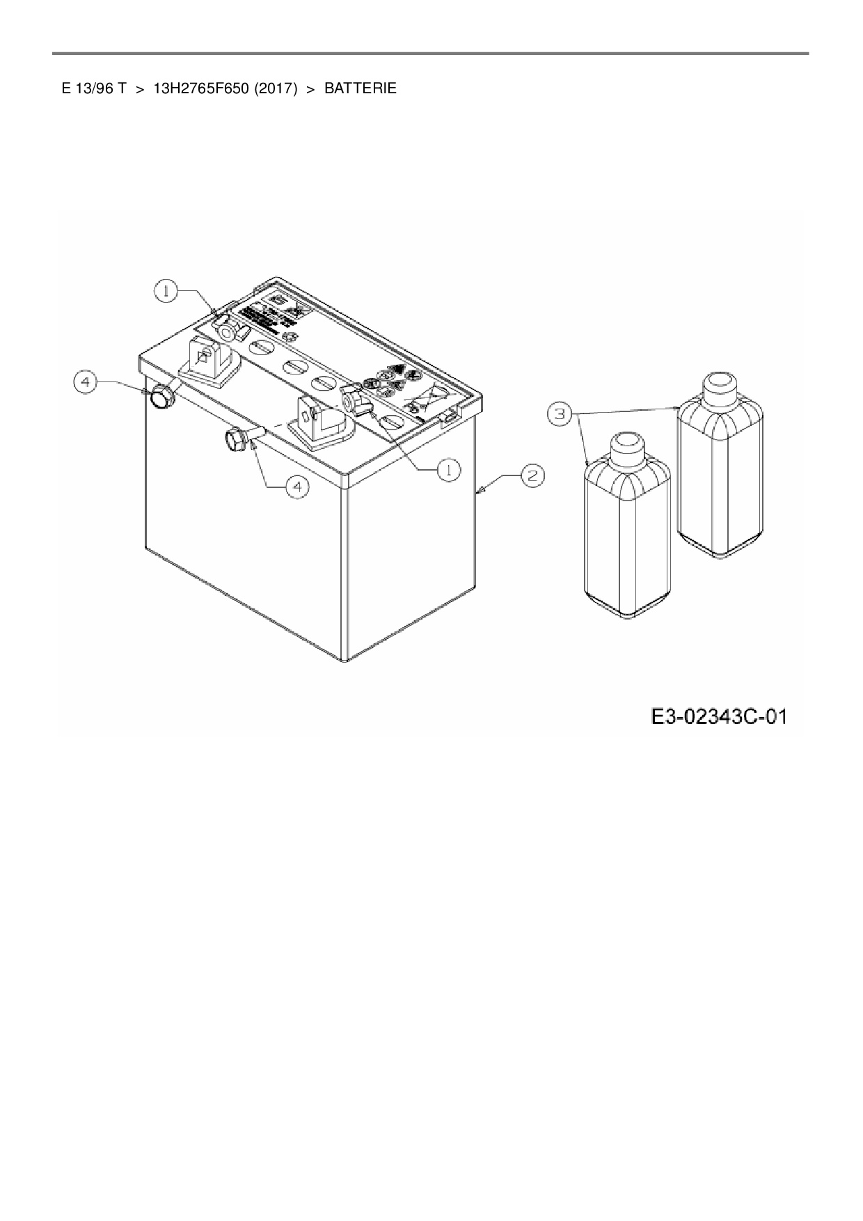 Ersatzteile für Rasentraktor Wolf-Garten E 13/96 T aus der Zeichnung Batterie: