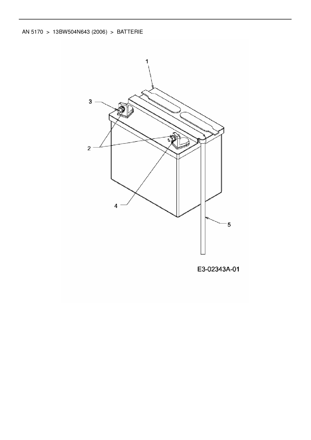 Ersatzteile für Rasentraktor Yard-Man AN 5170 aus der Zeichnung Batterie: