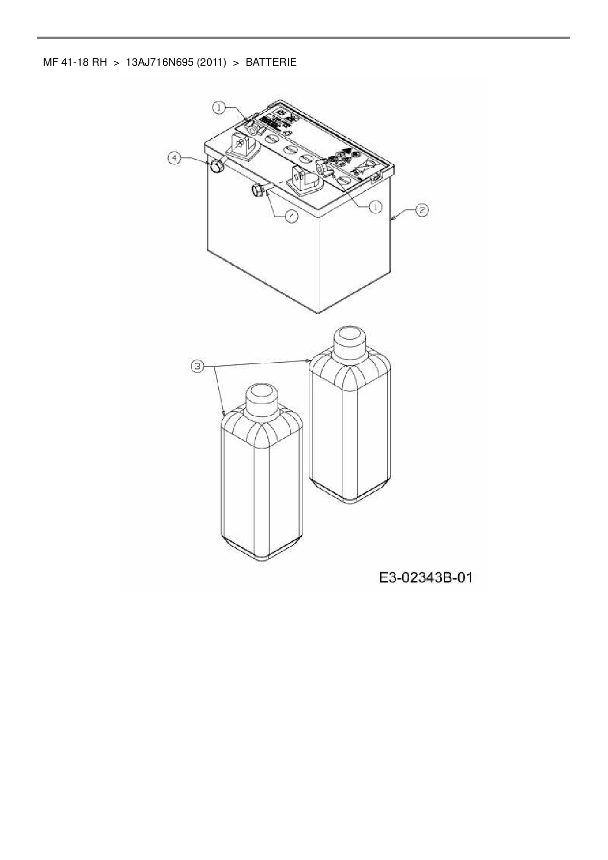 Ersatzteile für Rasentraktor Massey Ferguson MF 41-18 RH aus der Zeichnung Batterie: