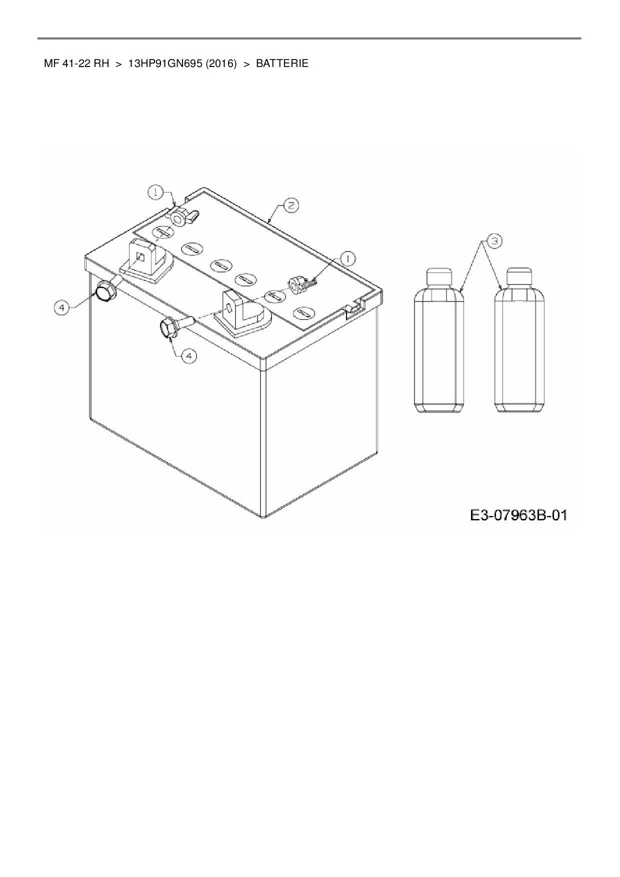 Ersatzteile für Rasentraktor Massey Ferguson MF 41-22 RH aus der Zeichnung Batterie: