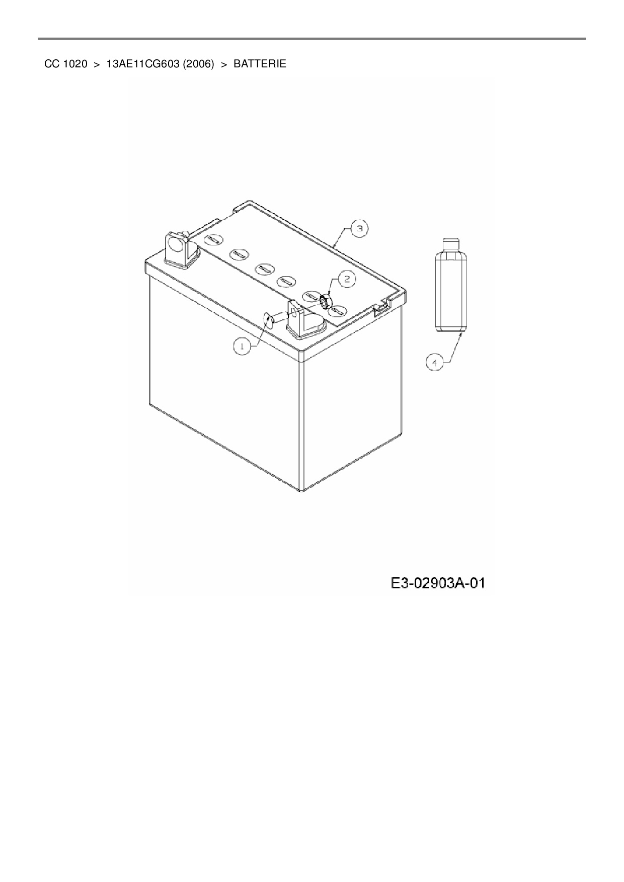 Ersatzteile für Rasentraktor Cub Cadet CC 1020 aus der Zeichnung Batterie: