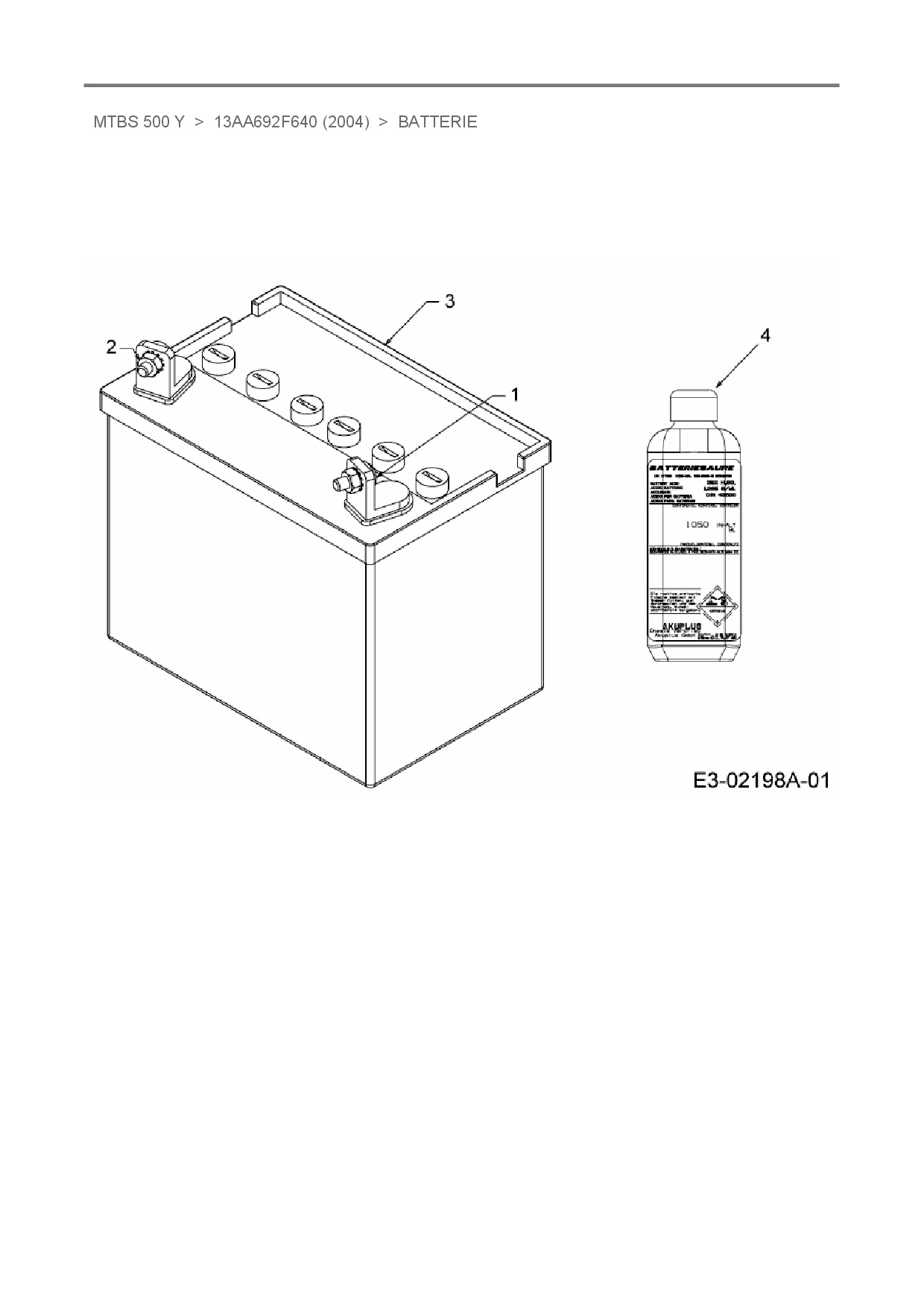 Ersatzteile für Rasentraktor Motec MTBS 500 Y aus der Zeichnung Batterie: