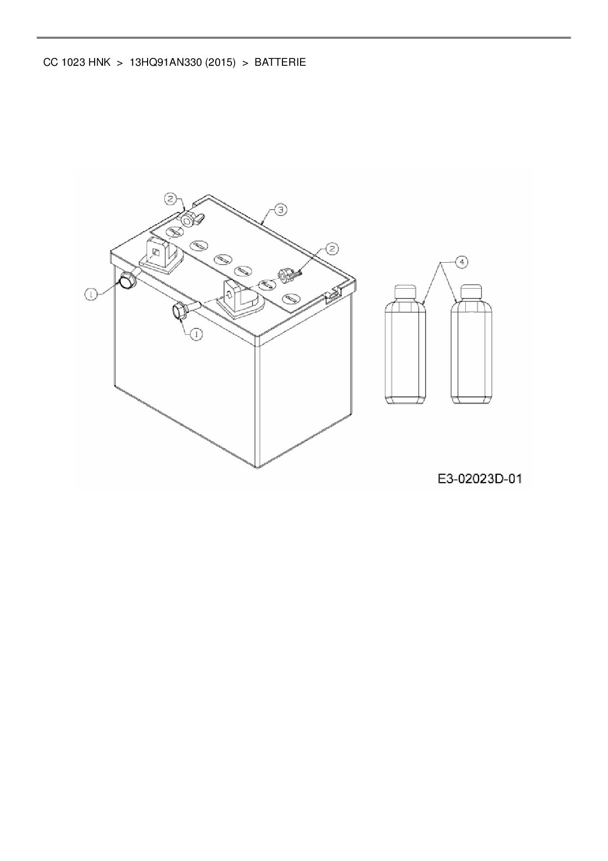 Ersatzteile für Rasentraktor Cub Cadet CC 1023 HNK aus der Zeichnung Batterie: