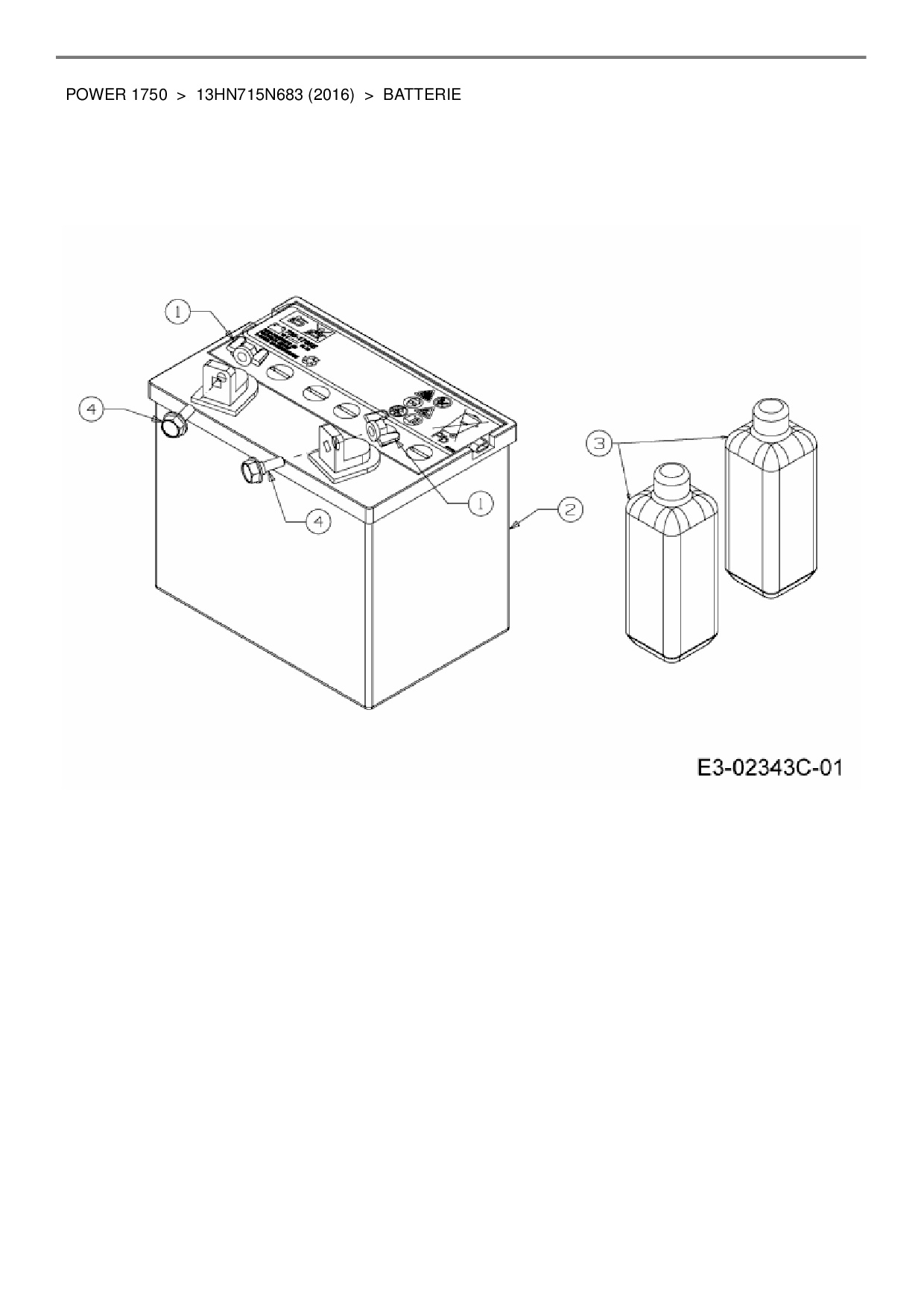 Ersatzteile für Rasentraktor MTD Power 1750 aus der Zeichnung Batterie:
