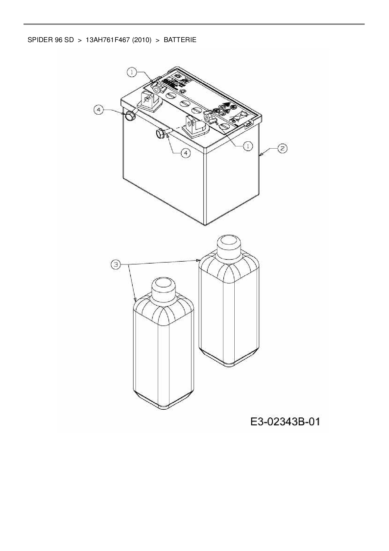 Ersatzteile für Rasentraktor MTD Spider 96 SD aus der Zeichnung Batterie: