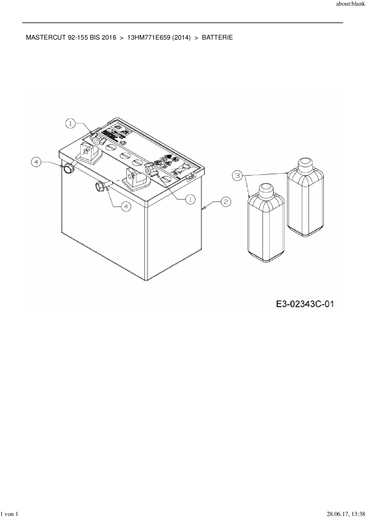Ersatzteile für Rasentraktor Mastercut Mastercut 92-155 bis 2016 aus der Zeichnung Batterie: