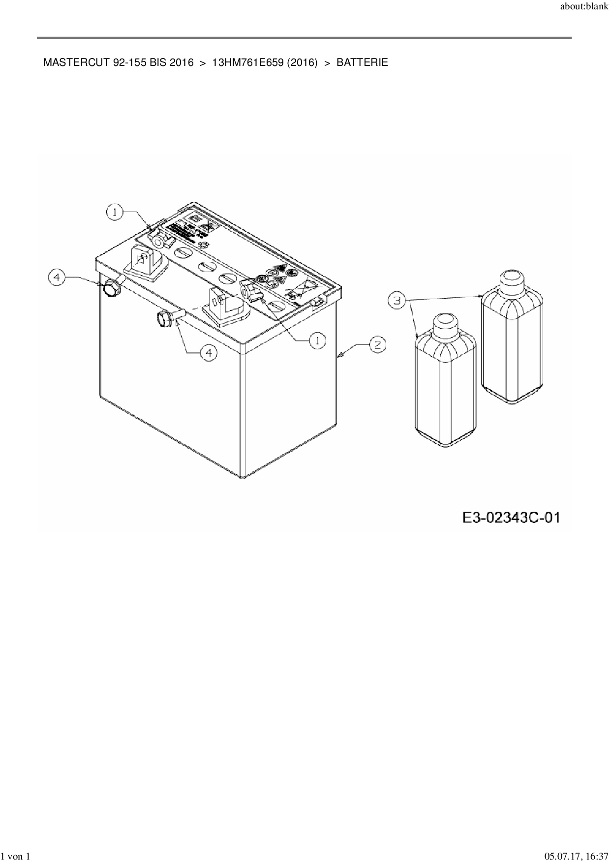 Ersatzteile für Rasentraktor Mastercut Mastercut 92-155 bis 2016 aus der Zeichnung Batterie: