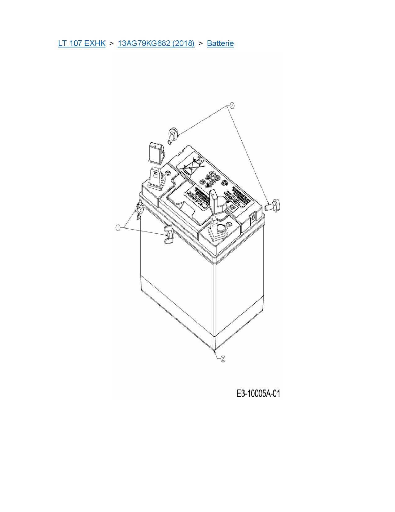 Ersatzteile für Rasentraktor MTD LT 107 EXHK aus der Zeichnung Batterie: