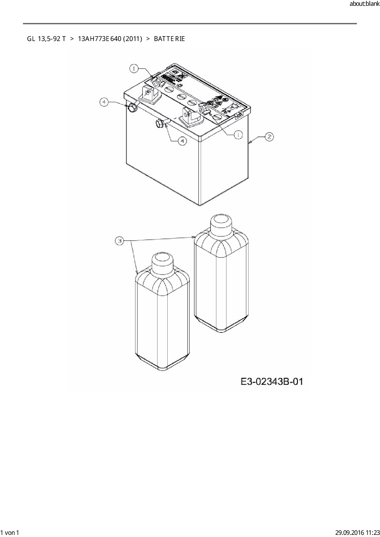 Ersatzteile für Rasentraktor Gartenland GL 13,5-92 T aus der Zeichnung Batterie: