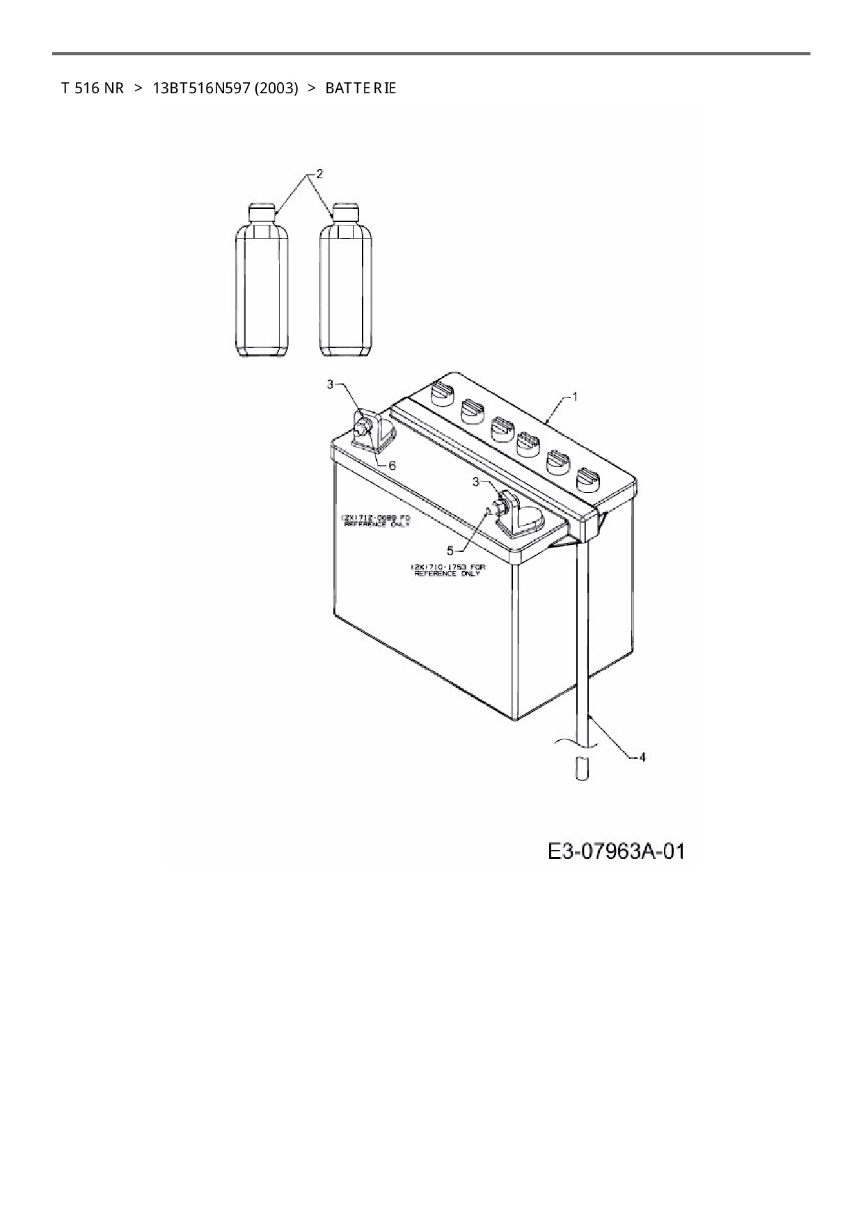Ersatzteile für Rasentraktor Columbia T 516 NR aus der Zeichnung Batterie: